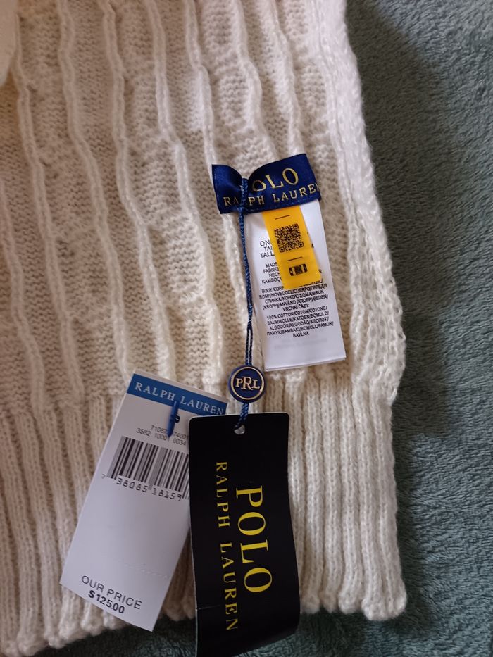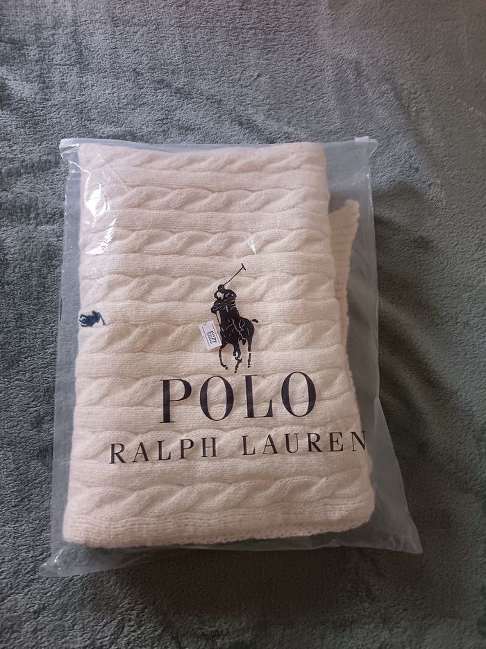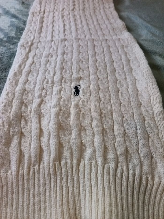 Je vends cette écharpe en coton de la marque Polo Ralph Lauren, de couleur blanche.