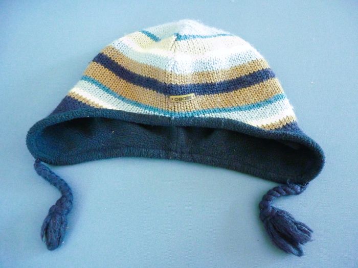 Bonnet Laine bebe Garçon Obaïbi bleu rayé 12 mois bleu TBE