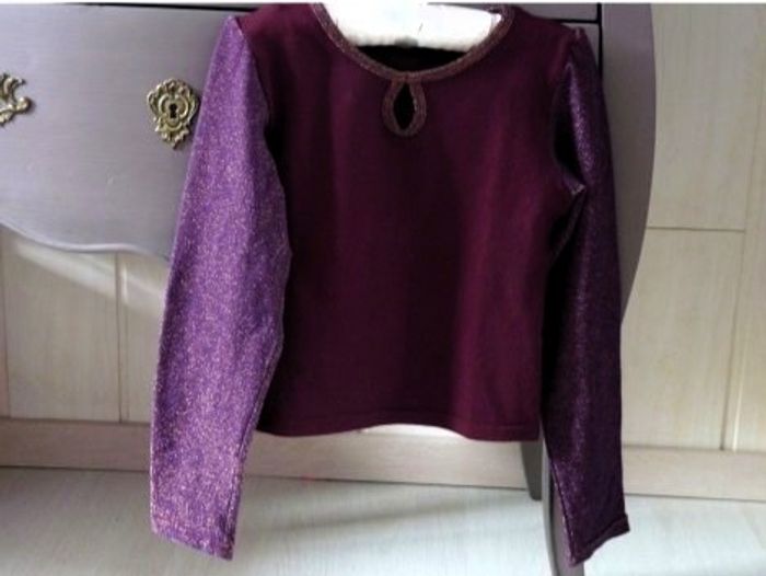 T-shirt Fille Tissaia 6 ans paillettes 6 ans col goutte d'eau TBE