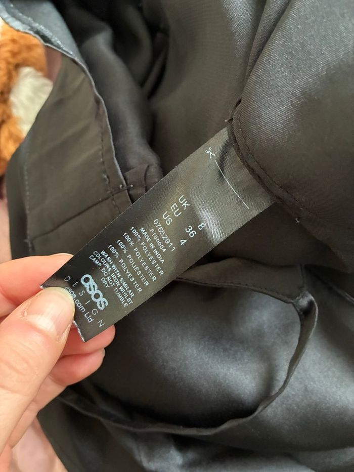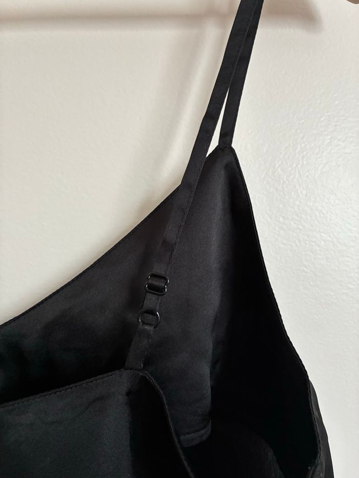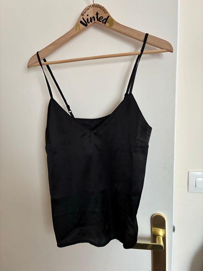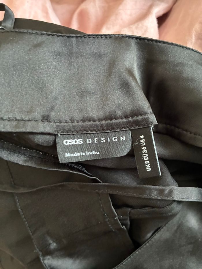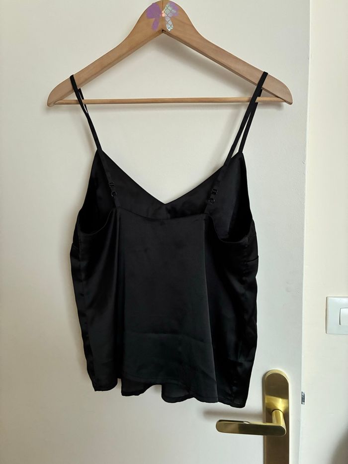 Caraco ASOS, couleur noir, avec un effet satiné élégant. Coupe fluide, agréable à porter, parfait seul ou sous une veste.