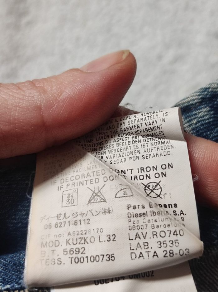 Marque diesel en taille 28 se qui correspond a un 38 ( taille française ).