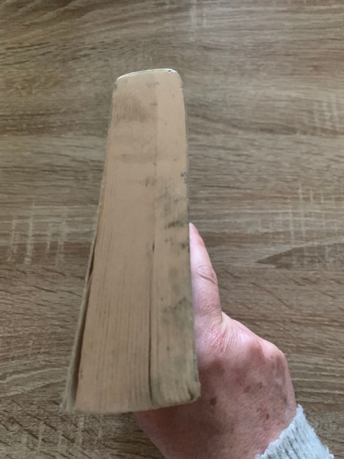 Tranche des pages tachée ainsi que les pages et l’intérieur de la couverture.