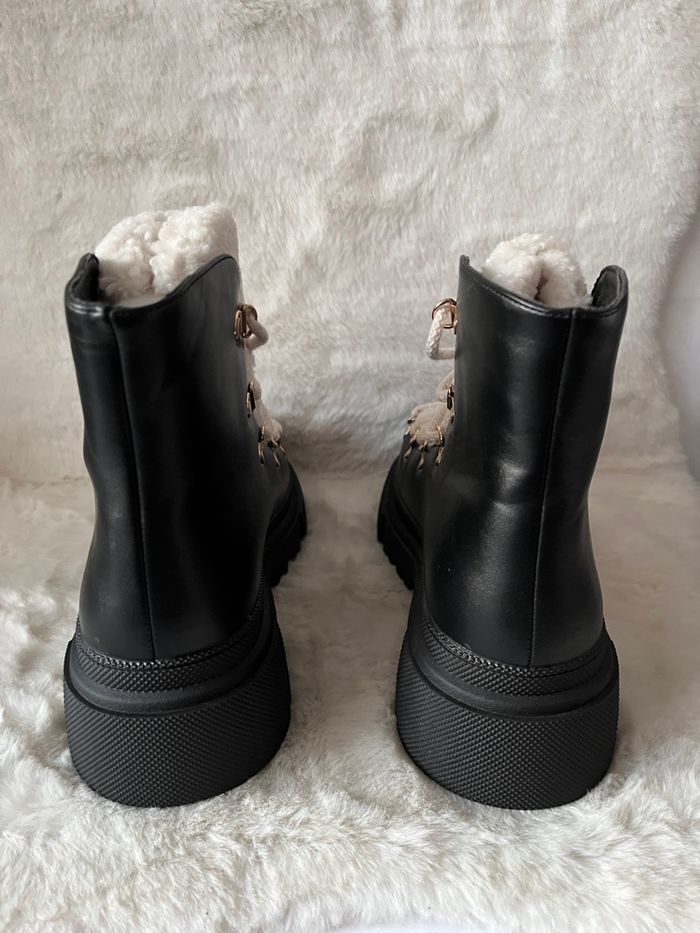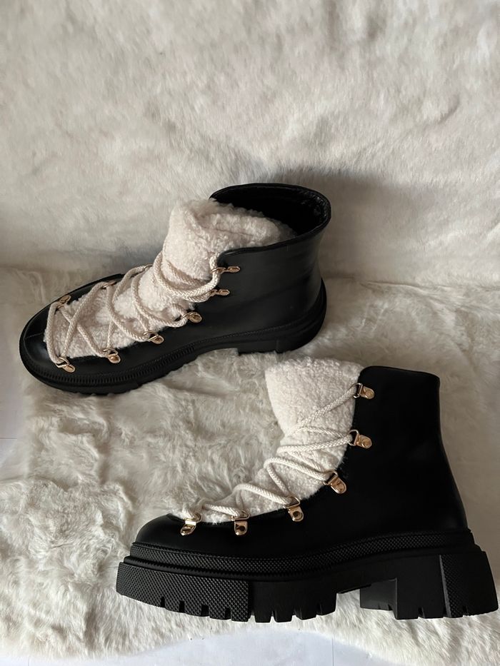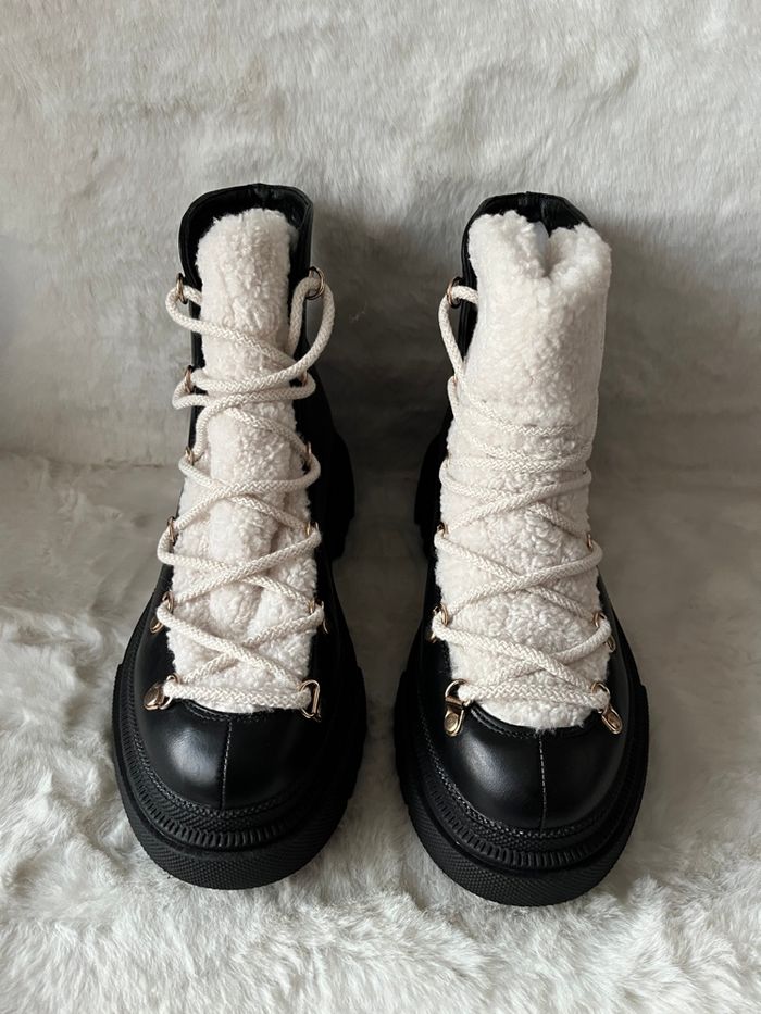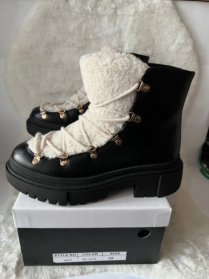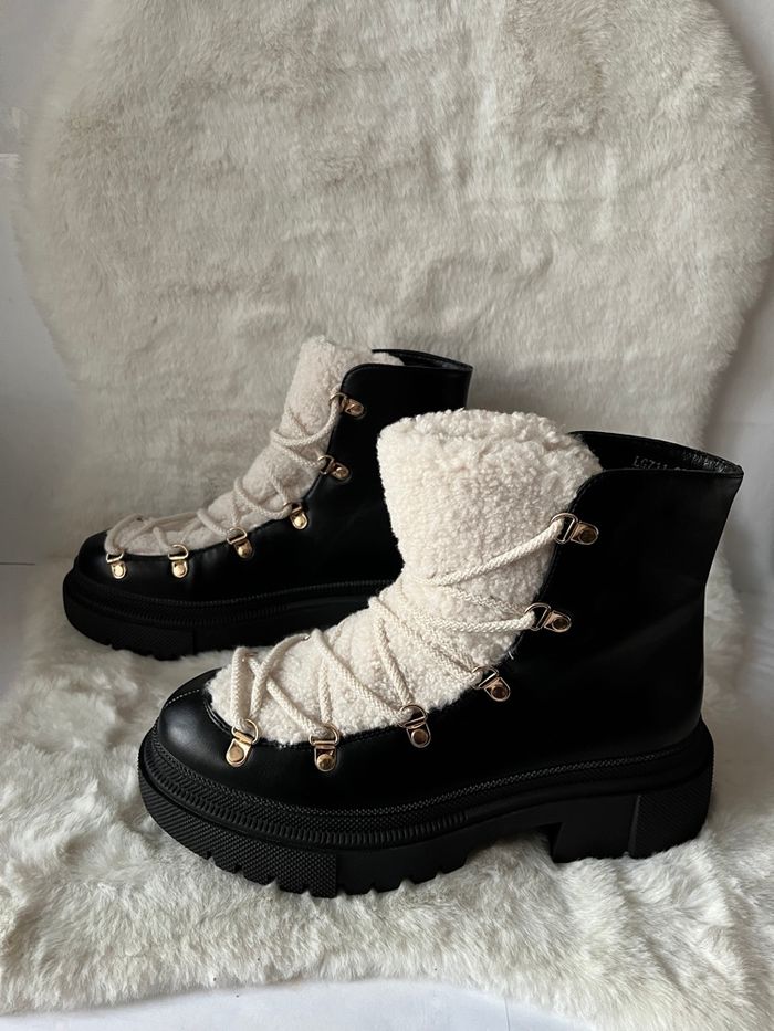 Bottines noires et moumoute crème Lady Glory pointure 39