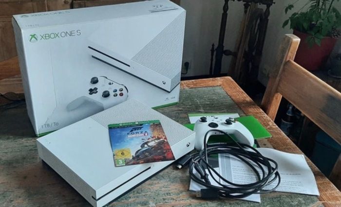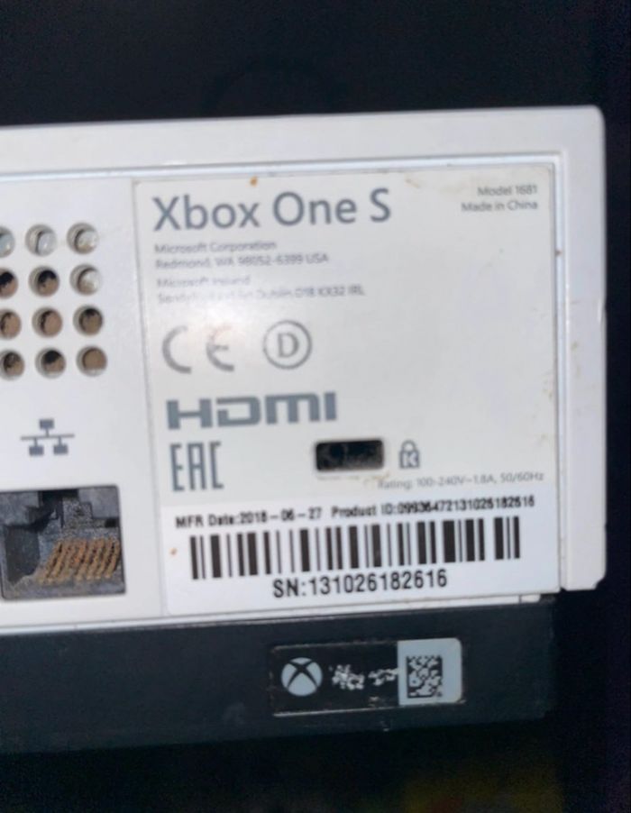 • Xbox One S blanche, modèle 1681, produite en 2018.
