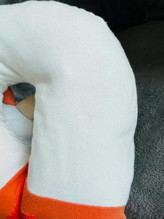 N’est plus d’un blanc immaculé (photos à l’appui ) et un petit trou au niveau de la fermeture mais reste en très bon état général
