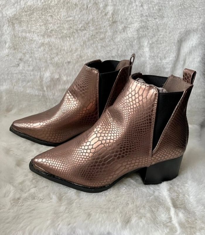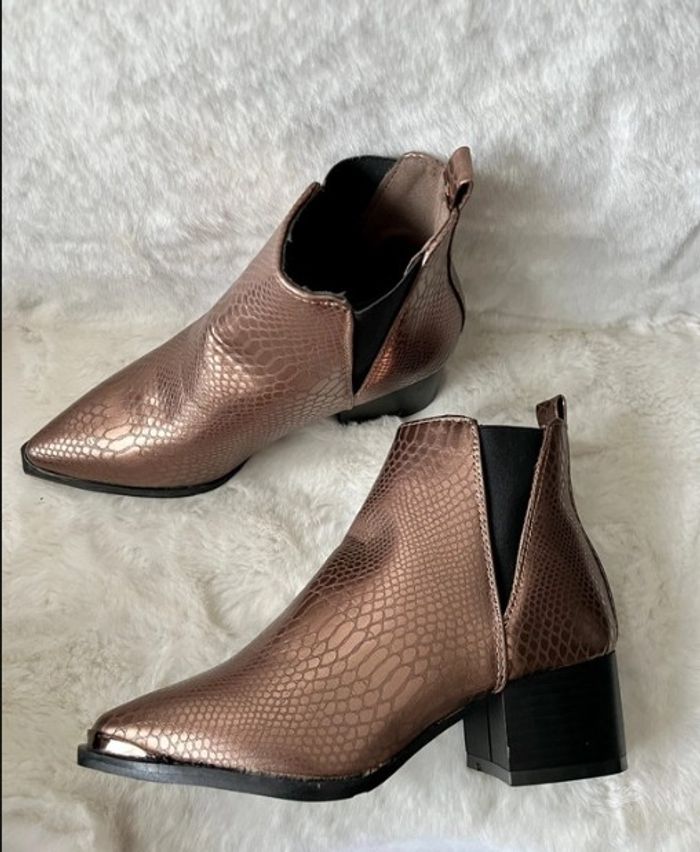 Bottines Madison python Copper Seven pointure 36, talons 5 cm couleur cuivrée