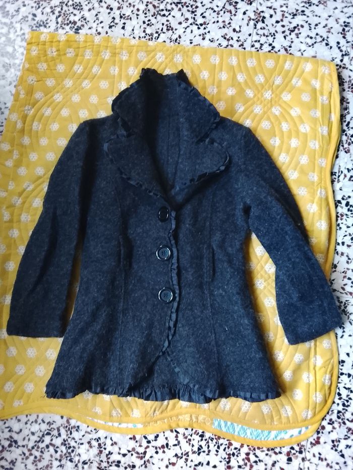 Bonjour, très belle veste a offrir pour Noël en taille 38 en noir a manches longues. 70% laine , 35% acrylque. En très bon état et sans étiquette : hauteur devant : 67cm, Largeur : 24cm. Hauteur manche : 52cm, largeur : 17cm. Pensez a vos cadeaux de fin d'année.