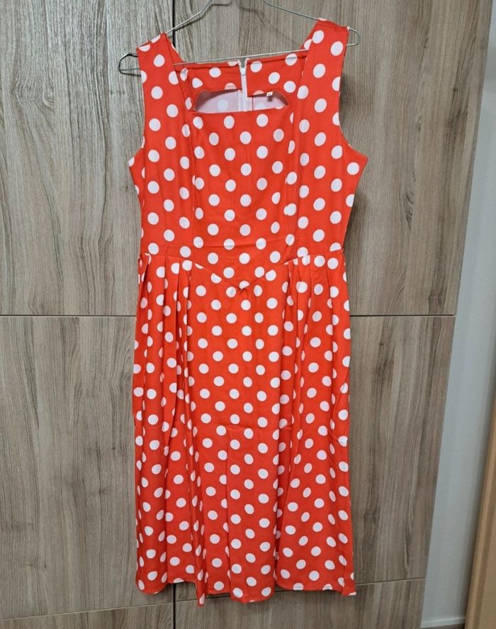 Robe rouge à petits pois blancs