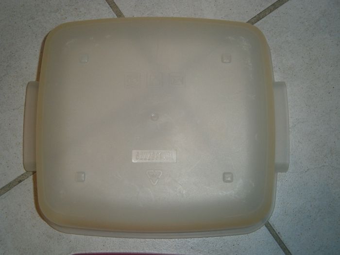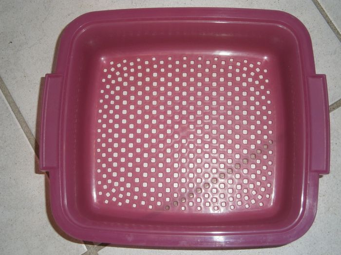 Couvercle opaque. Bac à trous rose. Bac à eau transparent.
