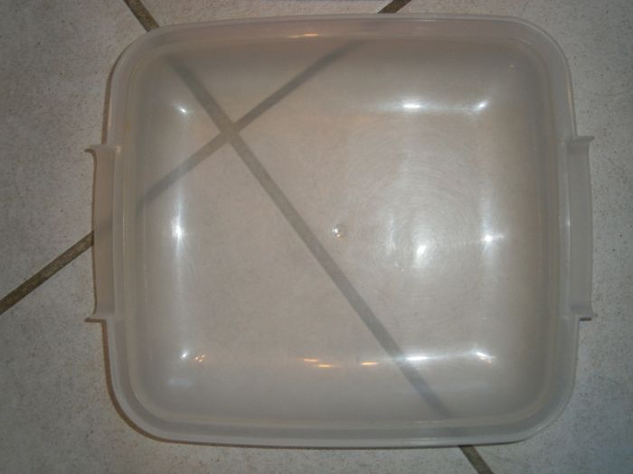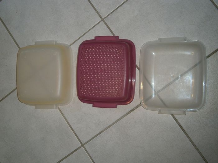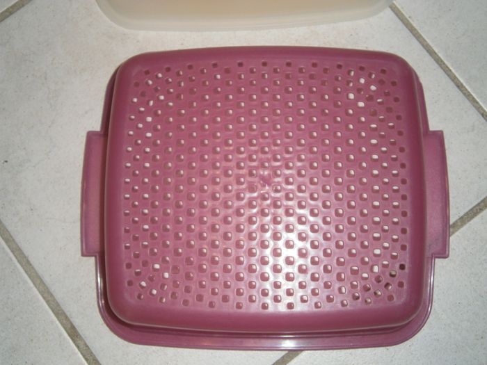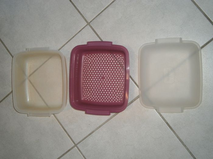 En 3 parties : Bac à eau, bac à trous et couvercle.