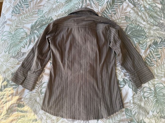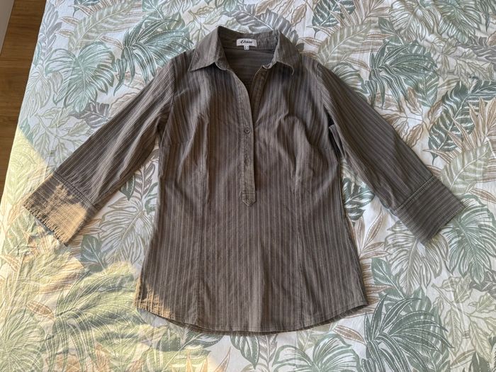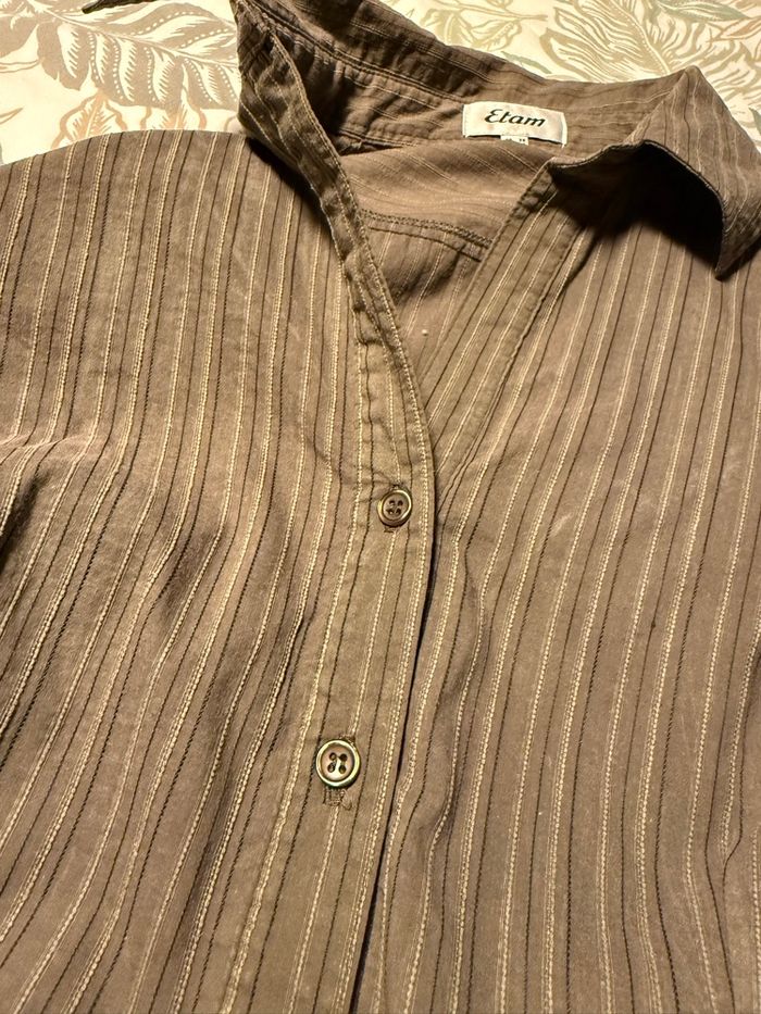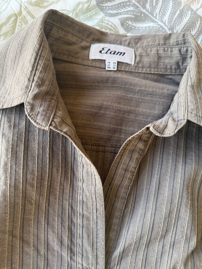 Chemise / Tunique vintage kaki à rayures à manches 3/4 Etam taille 38.
