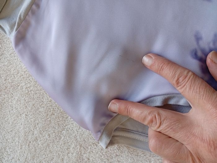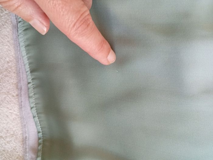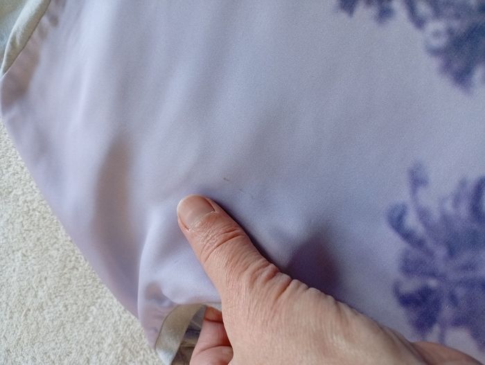 Quelques petites taches,et un fil légèrement tiré conforme aux photos.