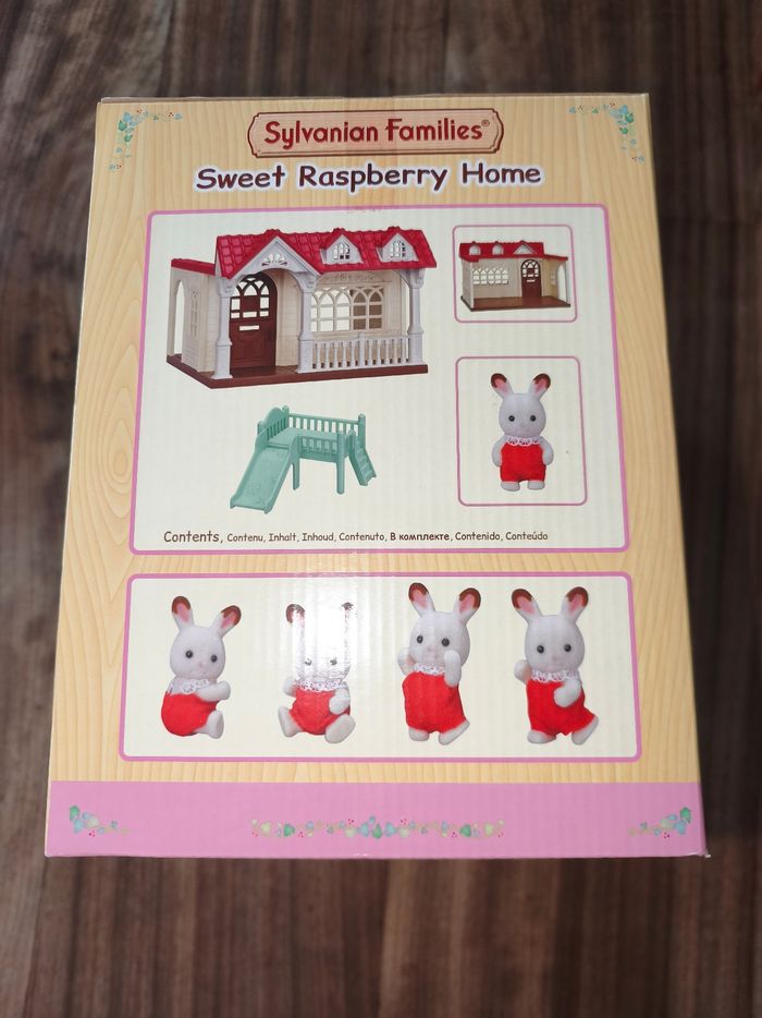 La maison framboise est une jolie maison composée d'un espace de jeu et d'un porche. Elle contient une figurine de Crème, le bébé Lapin Chocolat et un lit qui fait office de toboggan. Elle est connectable avec les autres maisons du village - Le cosy cottage, La grande maison éclairée, La maison avec ascenseur - pour créer une immense villa