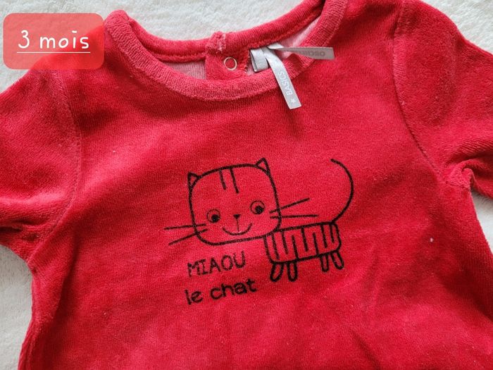 Pyjama velours rouge Orchestra "Miaou le chat" - 3 mois (60 cm) - photo numéro 3