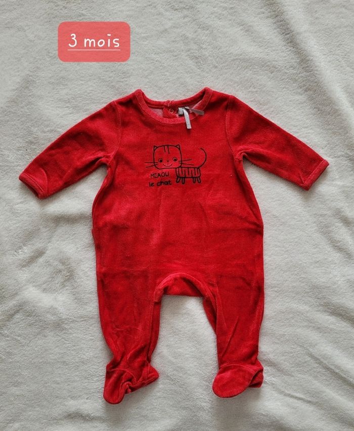 Pyjama velours rouge Orchestra "Miaou le chat" - 3 mois (60 cm) - photo numéro 1