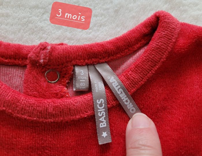 Vends adorable pyjama grenouillère (dors-bien) en velours de la marque Orchestra. Taille : 3 mois / 60 cm. Couleur : Rouge vif. Motif : Illustration d'un petit chat noir avec l'inscription "MIAOU le chat" sur le devant. Matière : Velours tout doux, idéal pour garder bébé bien au chaud pendant la nuit. Praticité : Ouverture par pressions à l'arrière et au niveau de l'assise pour faciliter le change. État : Très bon état. Maison non-fumeur. Envoi rapide et soigné. Profitez-en pour regarder mes autres articles en 3 mois et créer un lot pour économiser sur les frais de port !