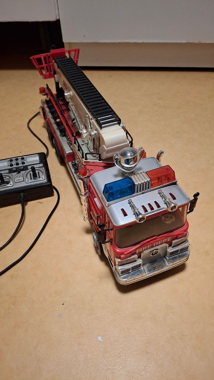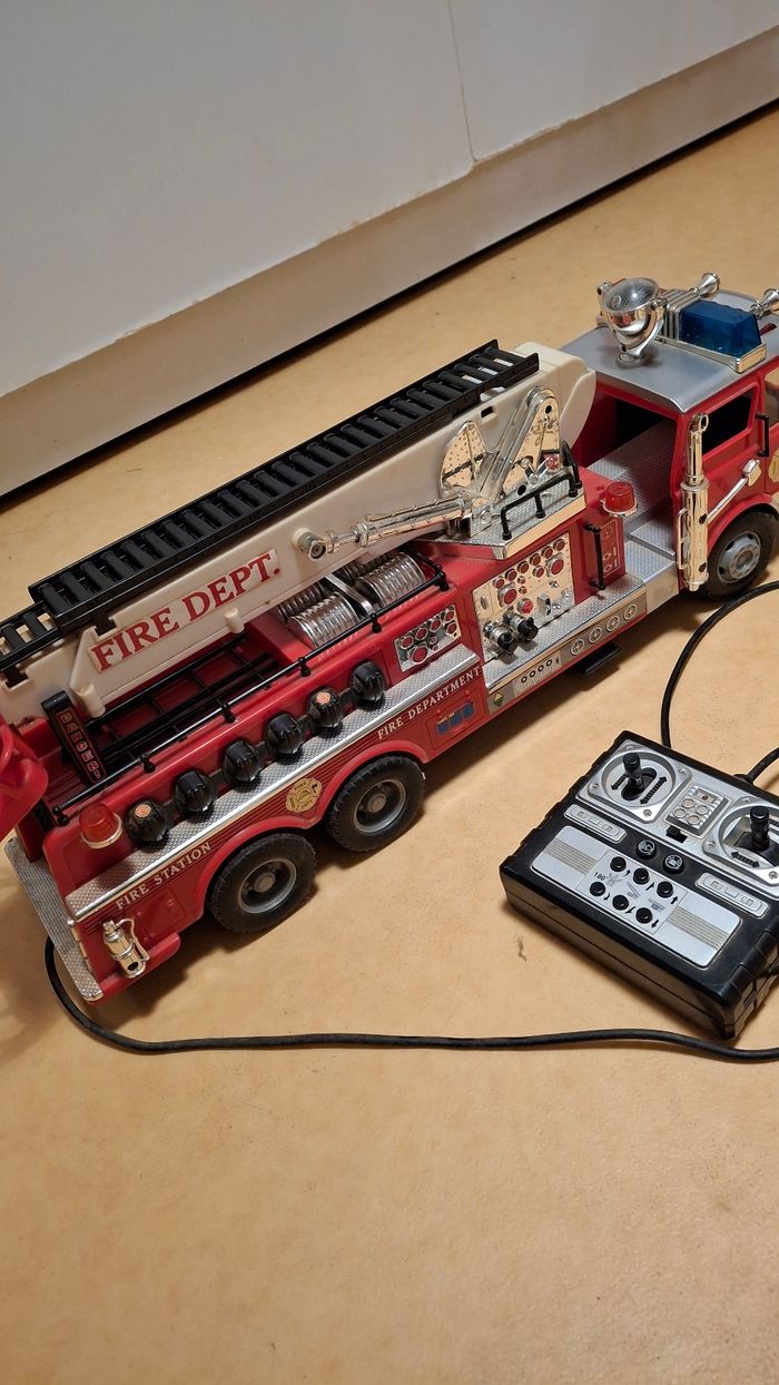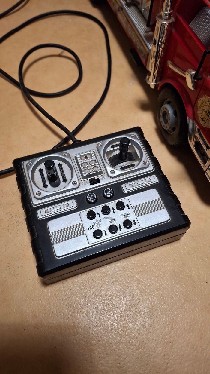 ℹ️ L'échelle de la grue peut normalement se développer et rétracter mais ces 2 boutons sur la télécommande ne fonctionnent visiblement plus. Les roues ont également du mal à tourner d’un côté.