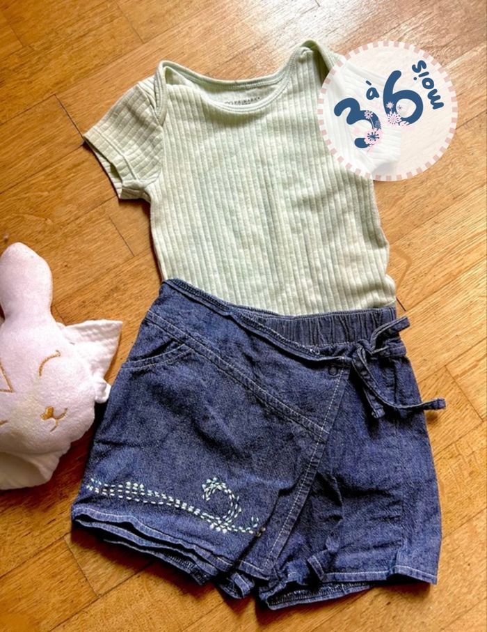 Lot bébé fille - Body menthe & Jupe-short jean - photo numéro 1