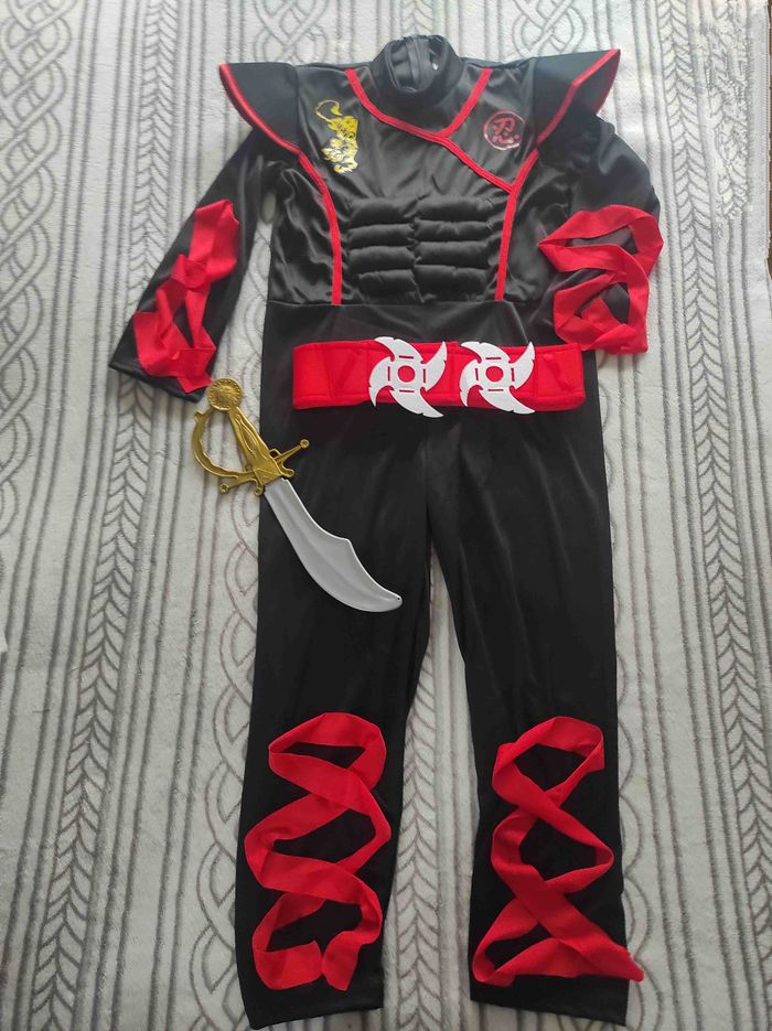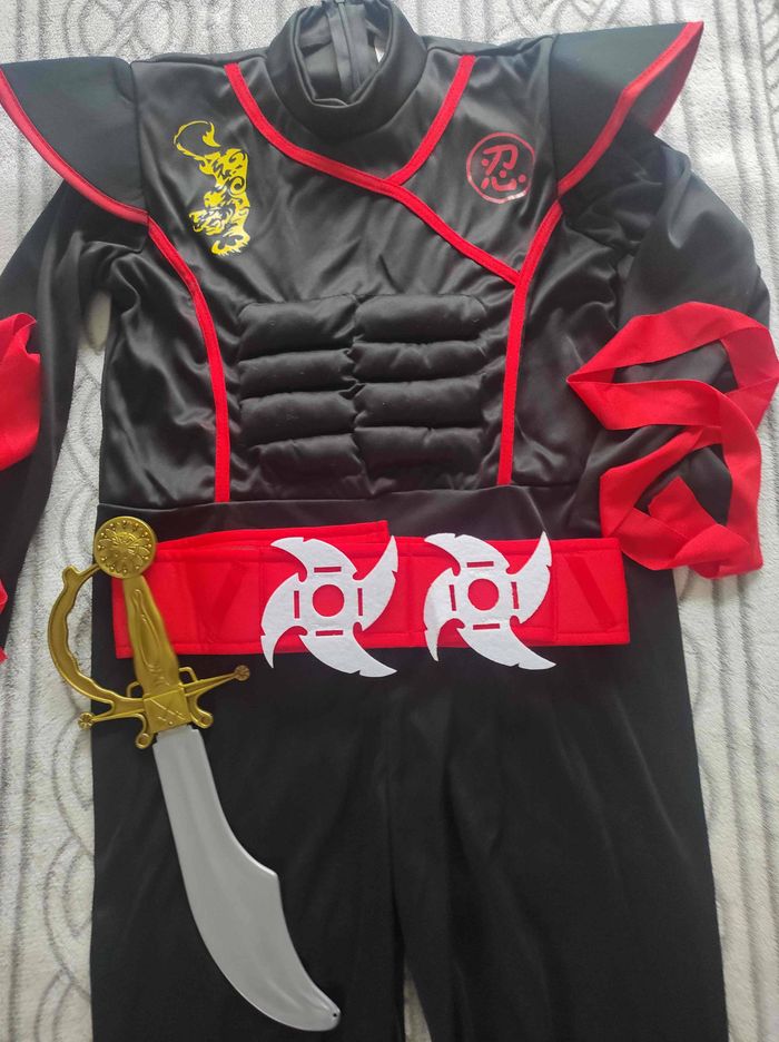 🥷Déguisement Ninja Dragon Taille 6-8 ans idéal pour le Carnaval, Halloween ou pour jouer au petit guerrier à la maison ! Ce costume de Ninjago noir et rouge est très facile à enfiler et confortable pour l'enfant.