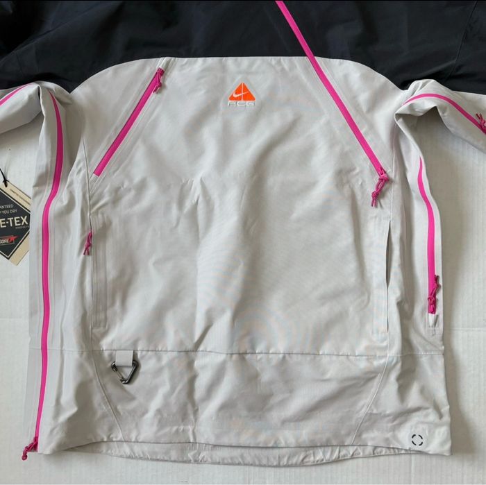 Modèle très qualitatif avec membrane GORE-TEX, conçue pour protéger du vent et de la pluie tout en restant respirante. Le design noir, blanc cassé avec détails roses apporte un style moderne et unique, typique de la gamme ACG.