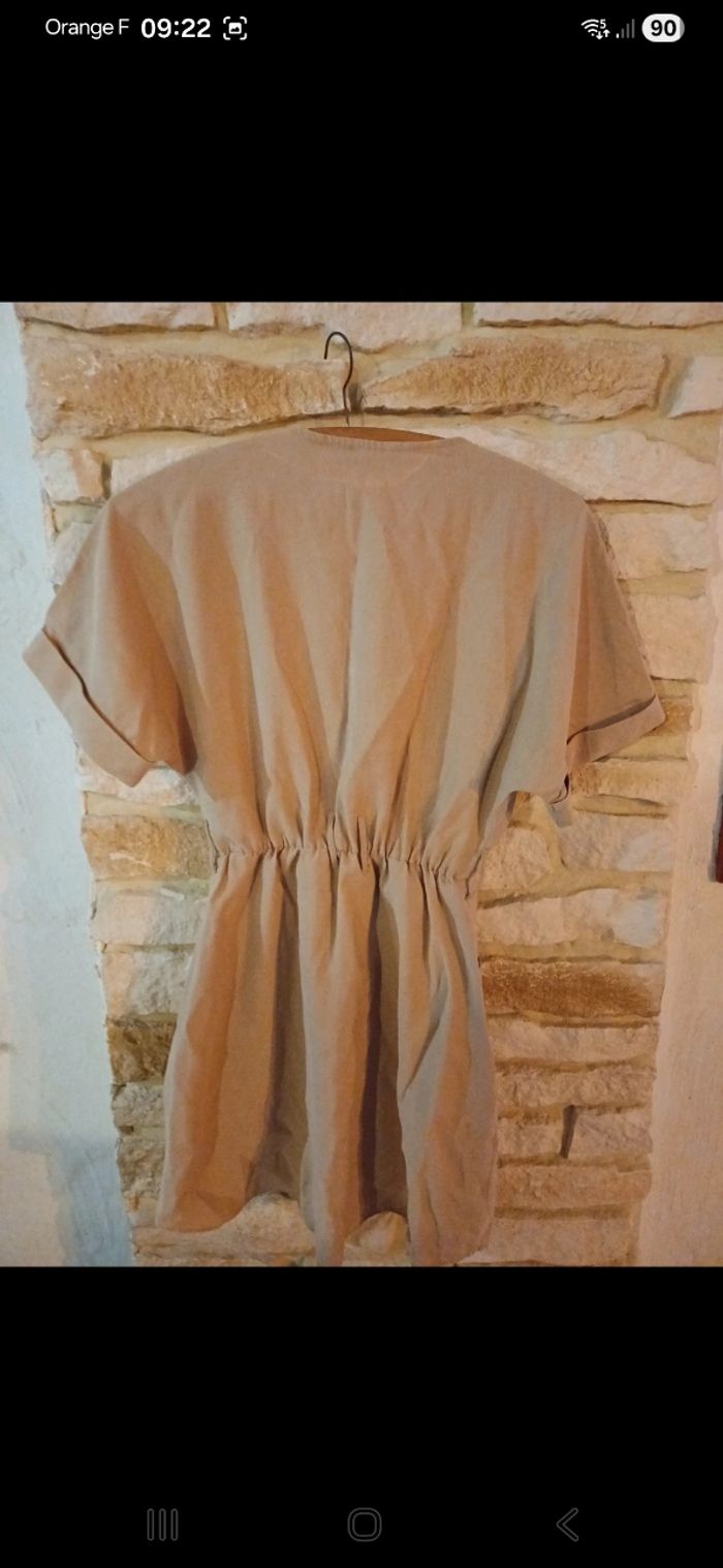 Robe manches courtes boutonnée à l avant avec deux poches. Longueur : 85 cm