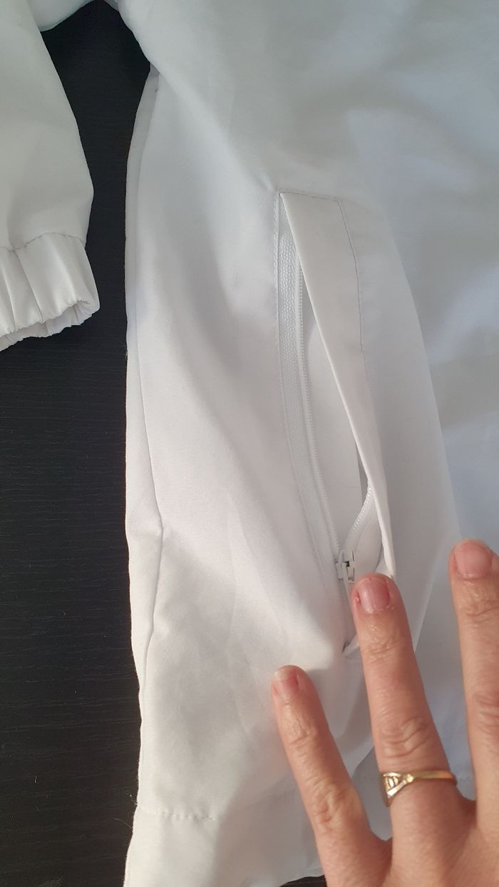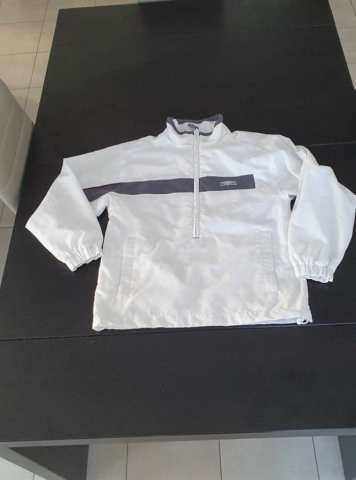 Je vends cette veste blanche Umbro pour enfant de taille 11 ans. - Type de produit : Veste - Marque : Umbro - Taille : 11 ans / 146 cm - Couleur : Blanc - Caractéristiques : Fermeture éclair, Poches centrales.