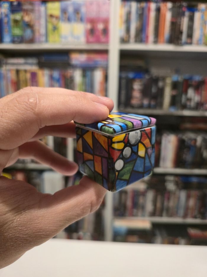 Vintage Antoni Gaudi Art Trencadis motif mosaïque dans des couleurs vives boîte à bijoux en porcelaine avec couvercle fabriqué en Espagne.