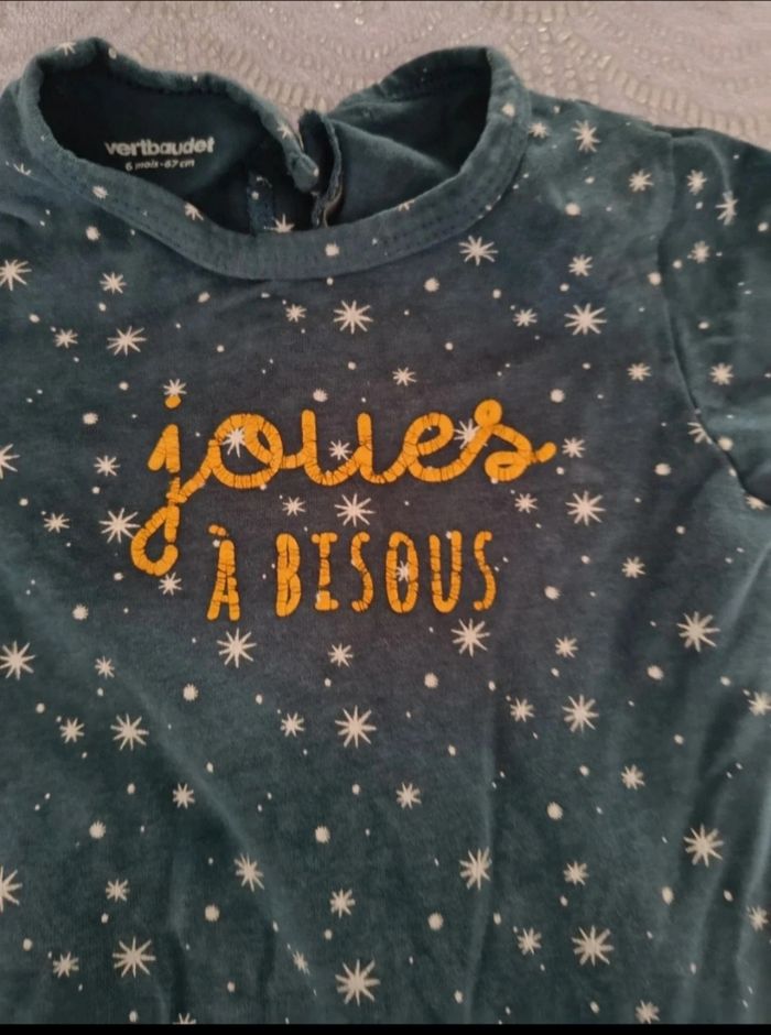 Message : Inscription "Joues à bisous" en lettres jaunes/dorées sur la poitrine.