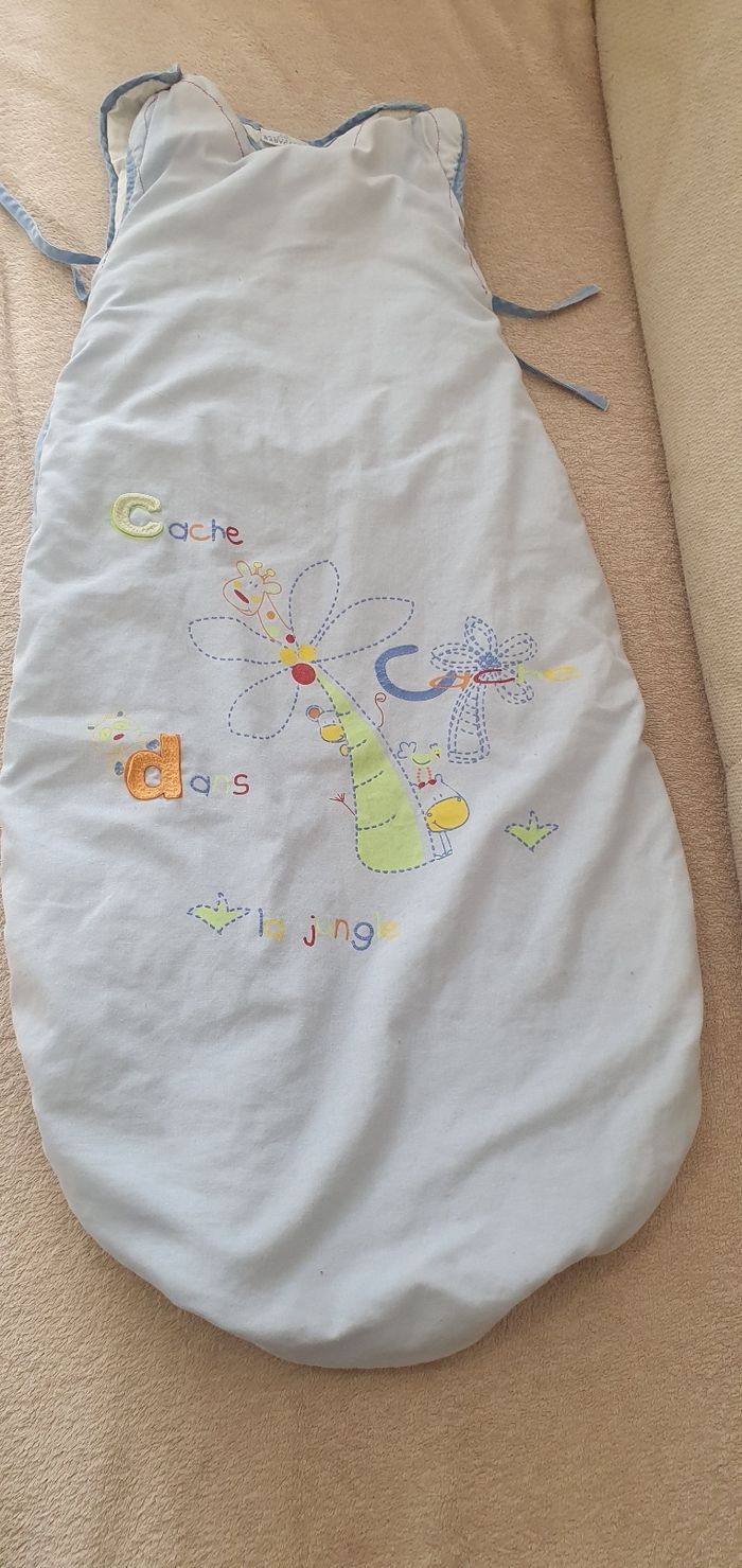 Je vend une gigoteuse sans manche, TOG 2, longueur max 92 cm environ, couleur bleu, évolutive avec des pressions à l arrière de la gigoteuse. Les pressions ou la fermeture éclair fonctionne parfaitement. Pas de trou ou de tâche. Trop petite maintenant pour mon enfant.