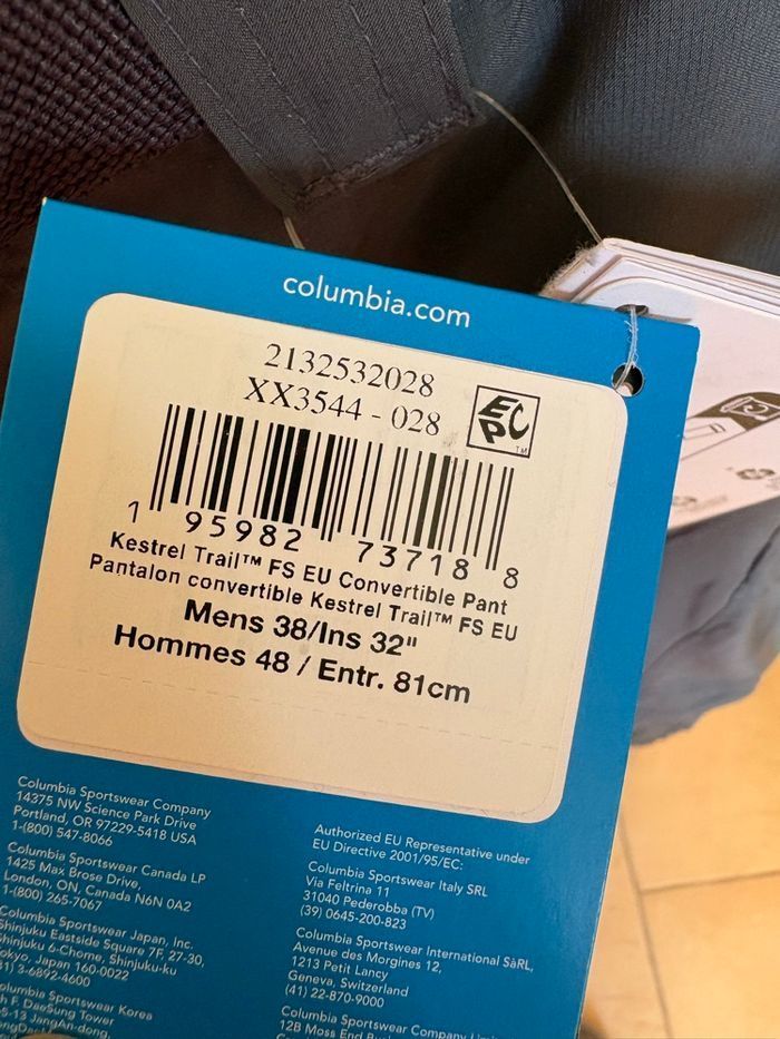 Pantalon de randonnée homme Columbia neuf avec étiquette Offert pour Noël mais ne convient pas Taille 48 Léger Nombreuses poches Ceinture Jambes amovibles