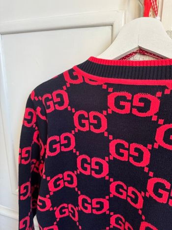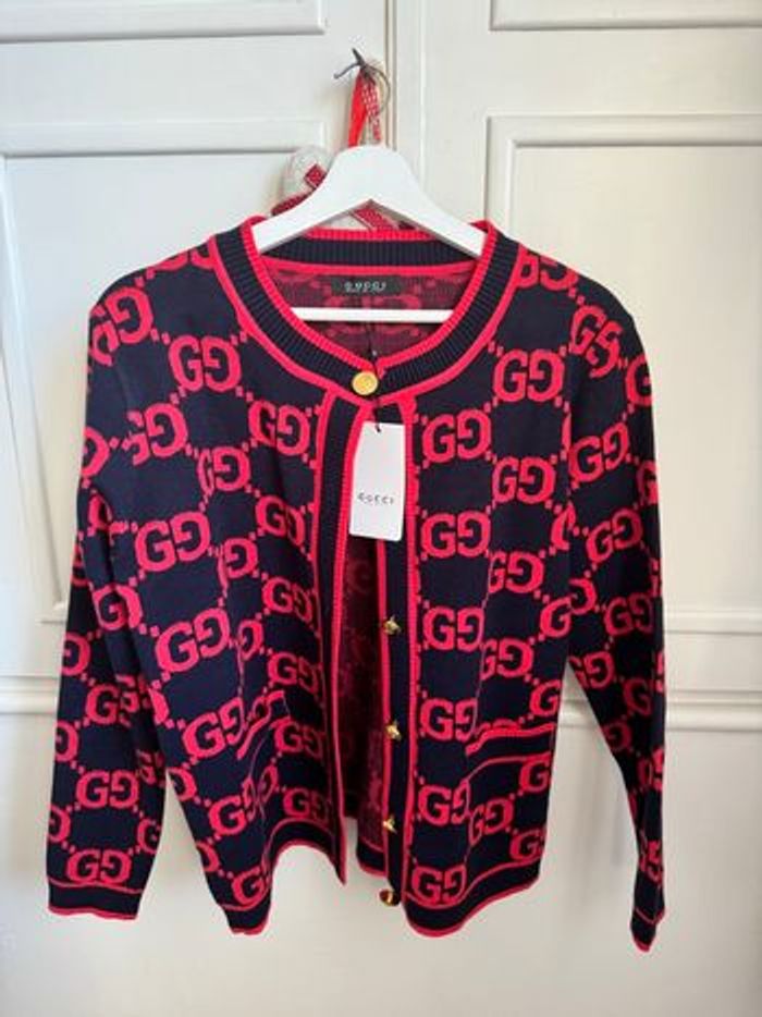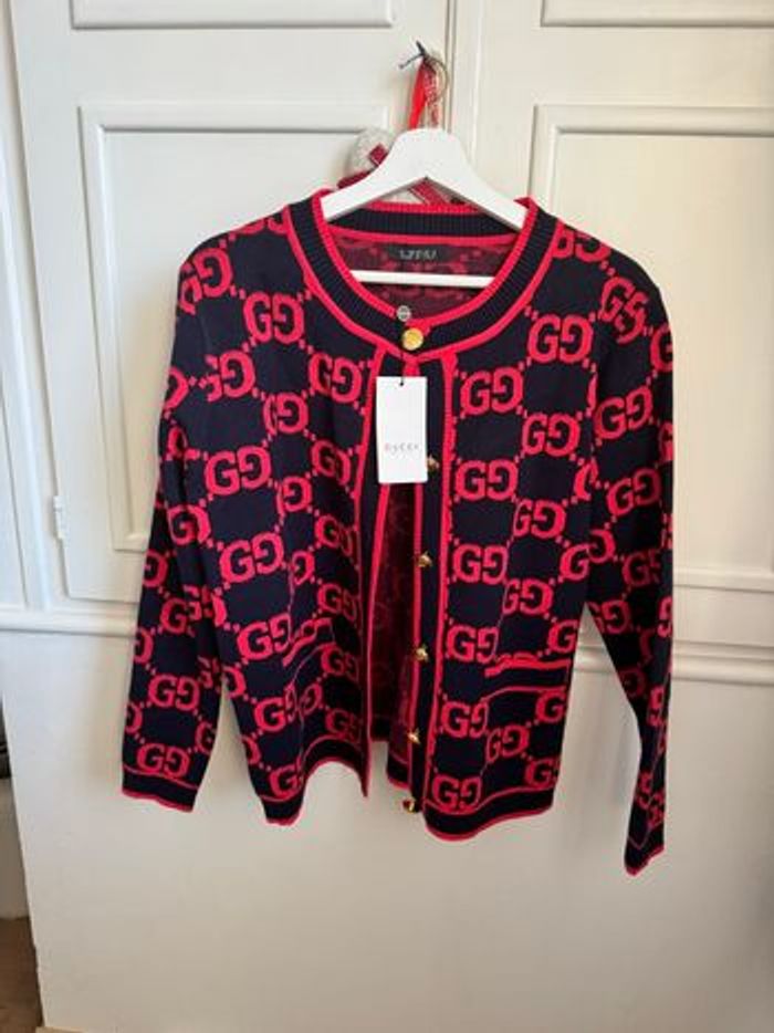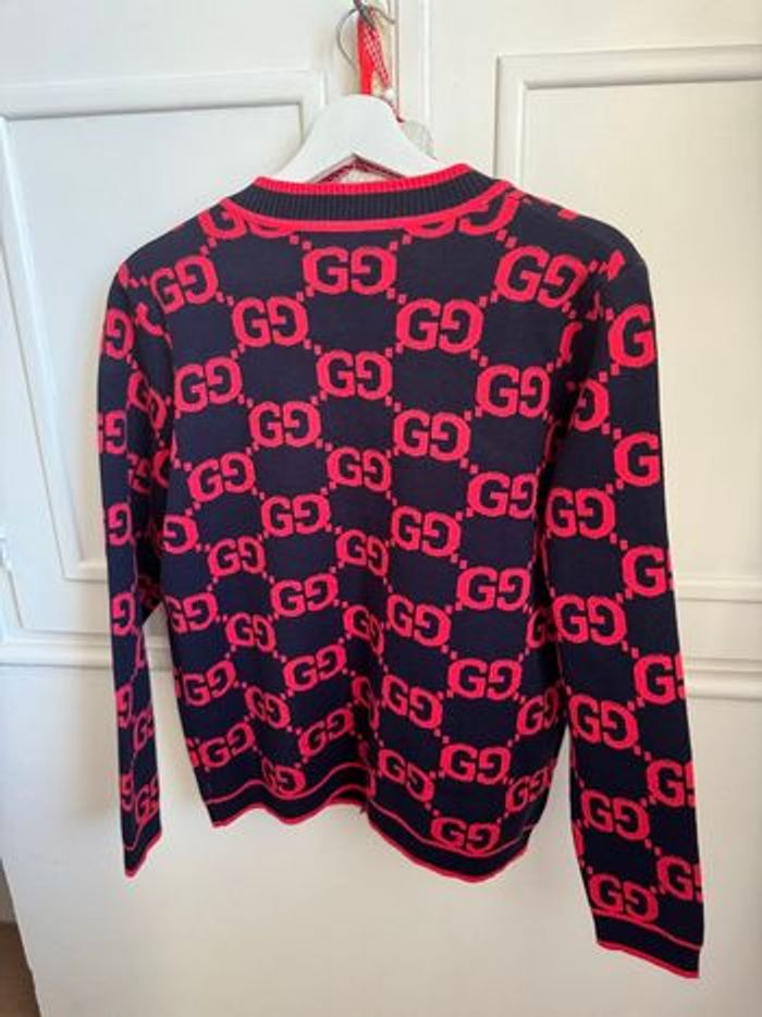 Gilet femme gucci bleu marine et rose/rouge Pull Sweat Robe Manteau Femme Fille Enfant Bebe Zara Luxe