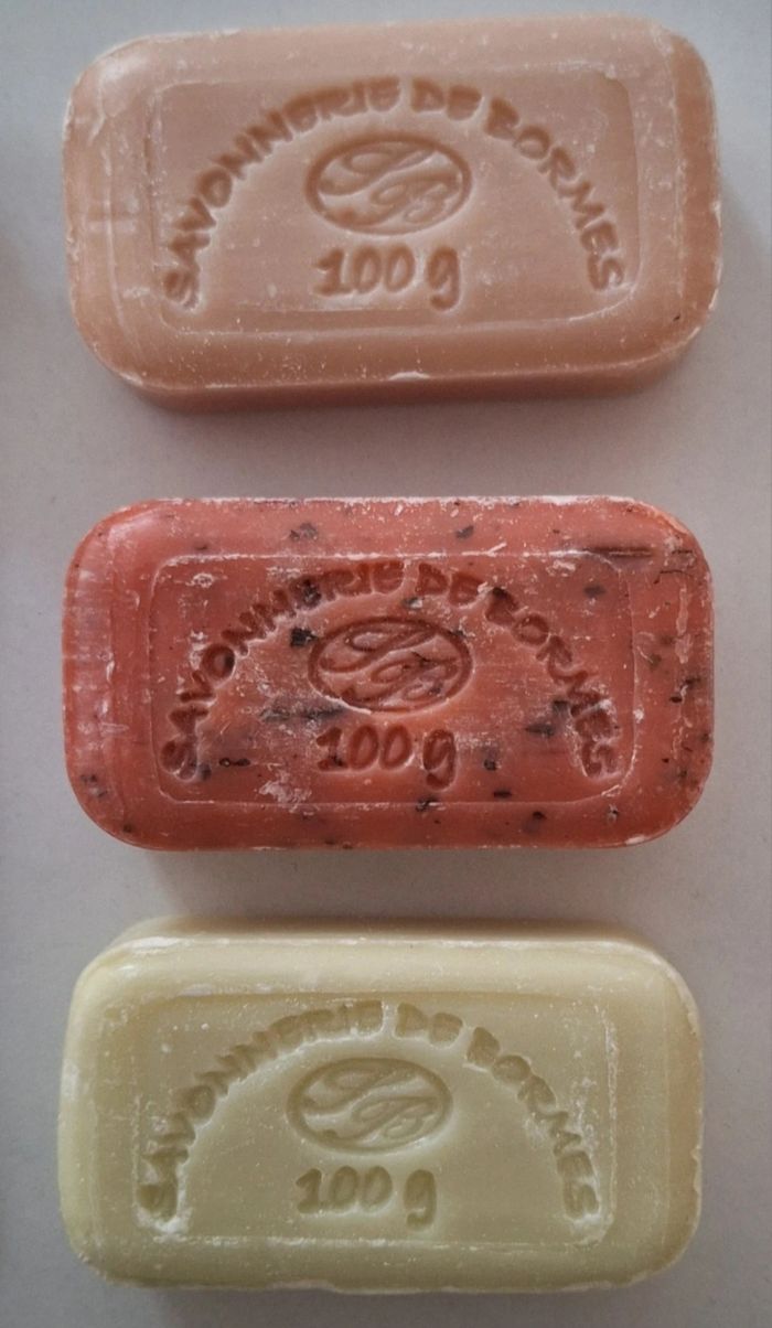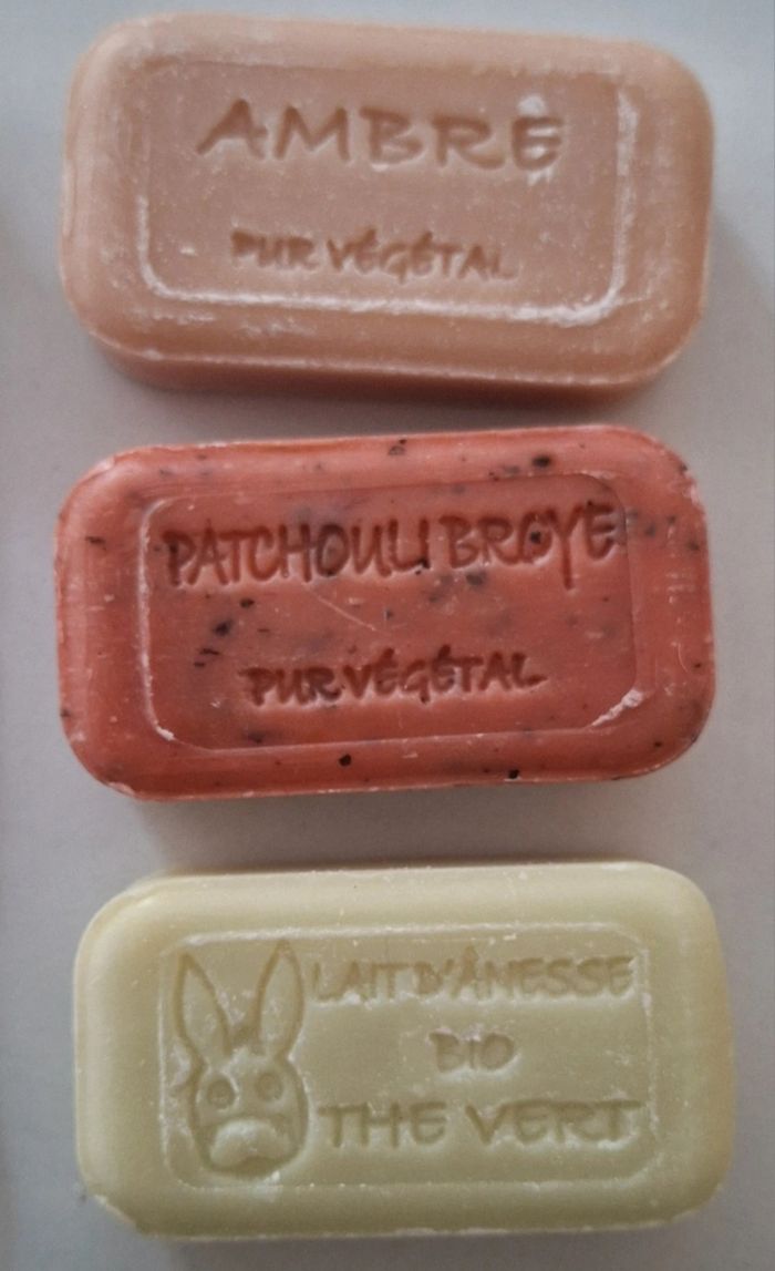 Lot de 3 savons artisanaux différents dans leur pochette en tissu