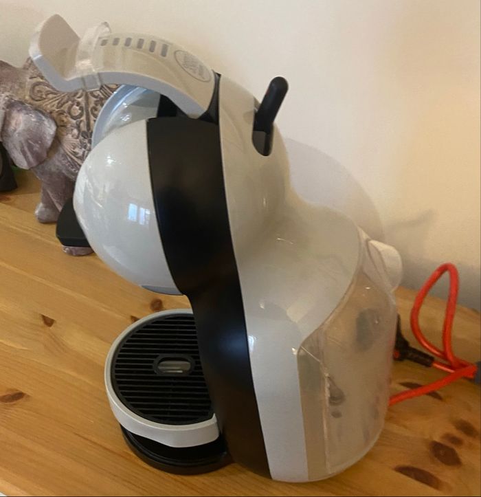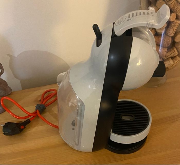 Vend une cafetière Dolce gusto en bon état, de couleur grise. Elle a servie mais peu encore en faire, elle fonctionne parfaitement. Elle a juste le réservoir fendus mais pas percé