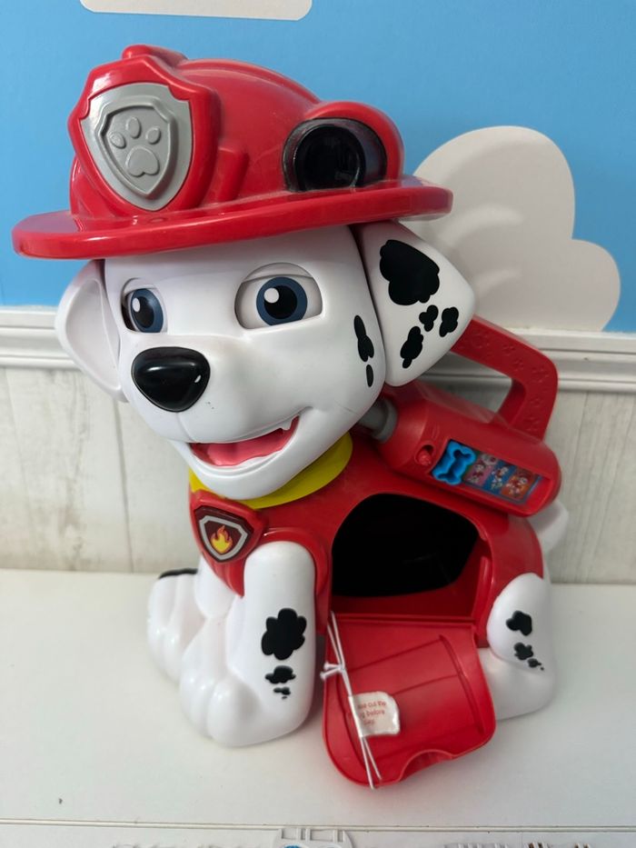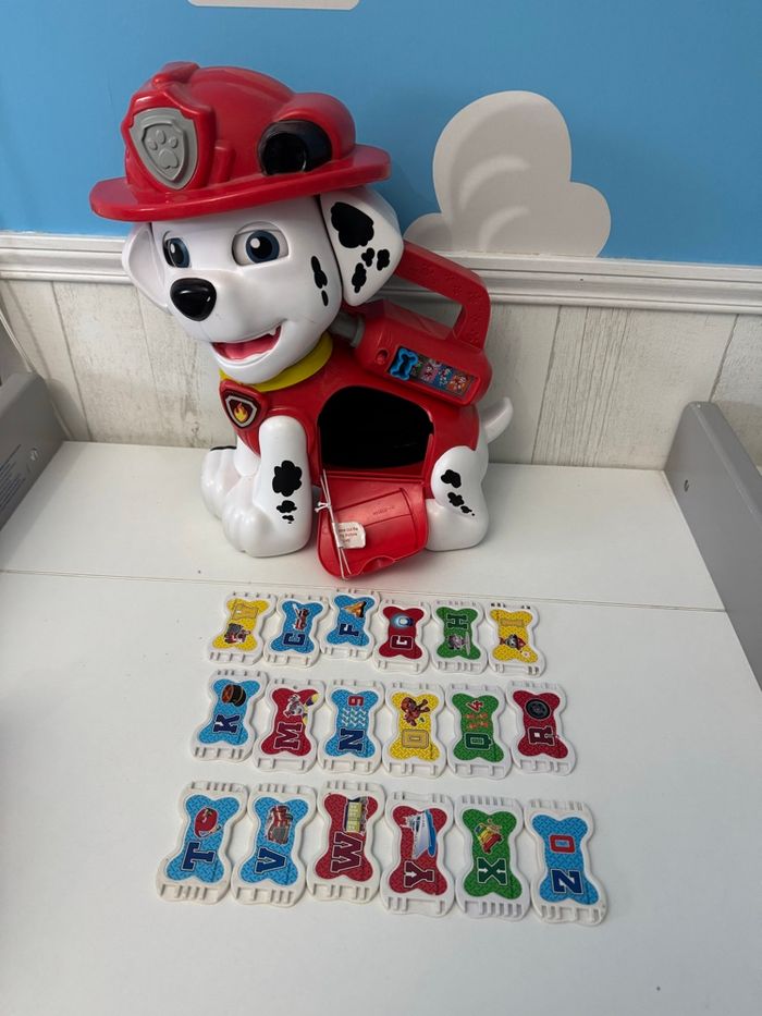 Pat' Patrouille - Marcus croc'lettres - jouet éducatif Pars en mission avec Marcus ! Apprends les lettres et fais plein de découvertes avec Marcus croc'lettres ! Donne un os-friandise à Marcus et il te dira la lettre, le son de cette lettre, un mot commençant par cette lettre et bien davantage… Fonctionne avec piles non fournies. 18 lettres incluses.