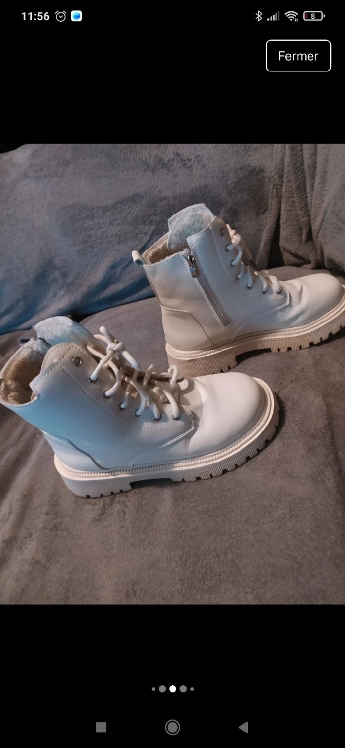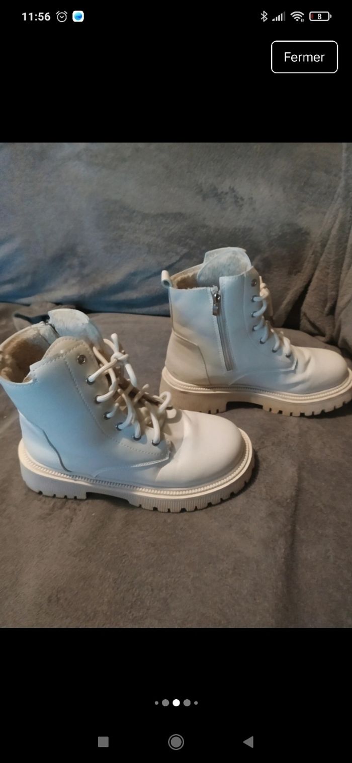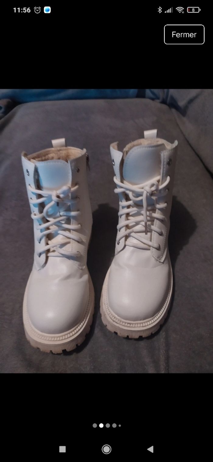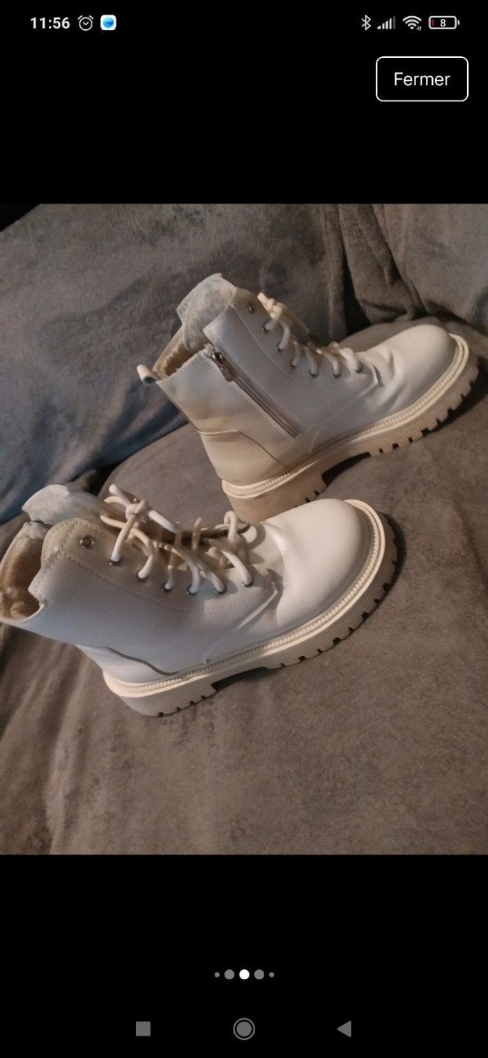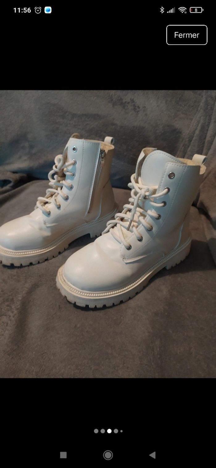 Trop canon 😍 Bottes beige/crème style rangers, super confortables et bien chaudes grâce à l’intérieur tout fourré ❄️ Semelle crantée + zip sur le côté, ultra pratique 👌 Look stylé, passe avec tout : jean, jupe, legging, robe 🫶 • Taille 39 • Couleur : beige crème • Intérieur moumoute mega douce • Fermeture éclair + lacets • Semelle épaisse antidérapante • Style tendance hiver / street / casual 📌 État : très bon état porté 2/3 fois 💶 Prix : 15€ 📦 Envoi rapide & soigné 🏡 Maison non fumeur 🐾 Pas d’aanimau