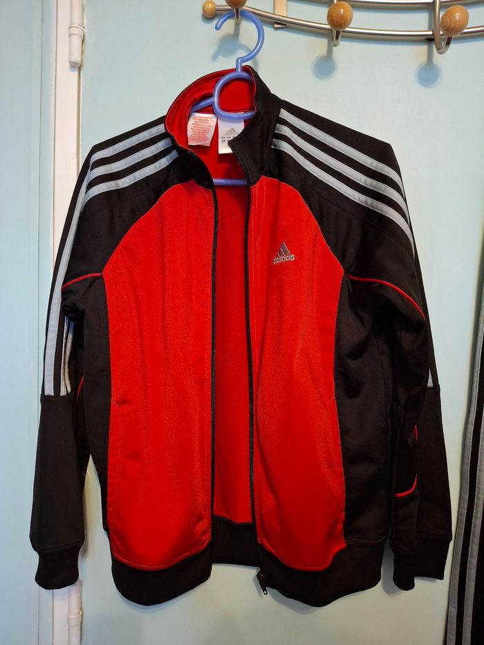 Ensemble sport (veste zippée pantalon jogging) rouge et noir, Adidas, taille XS / 12 ans
