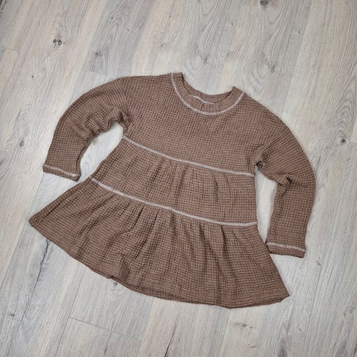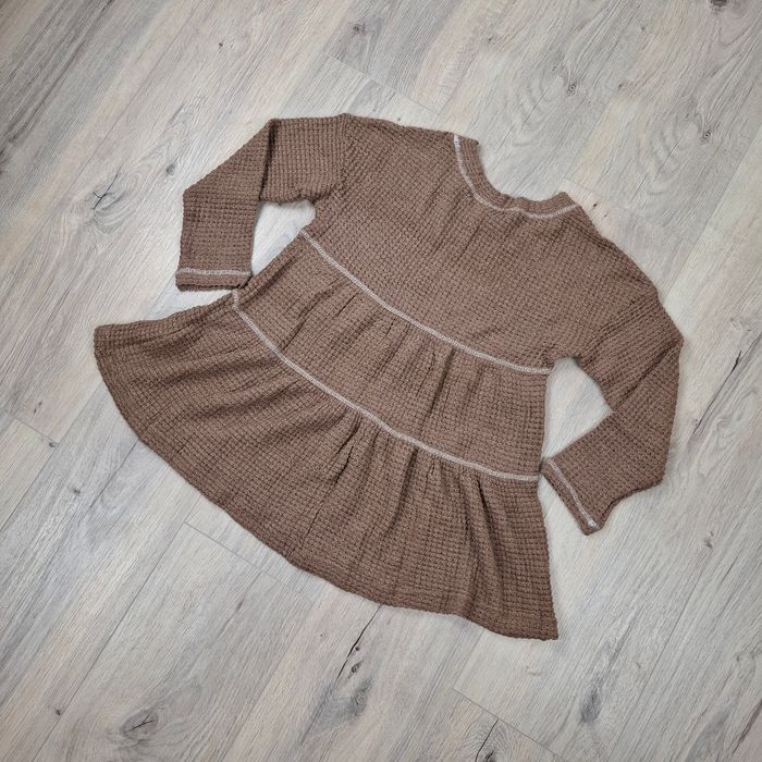 Robe enfant couleur marron / coffee, tissu gaufré doux et confortable.
