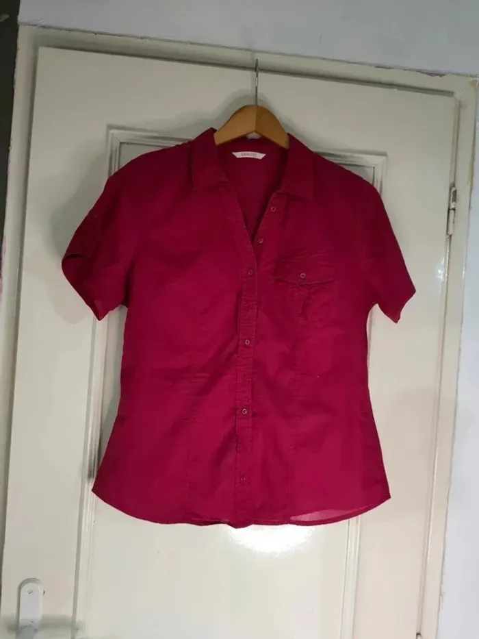 Manches courte Légère et agréable a porter Manches retroussables Fushia Largeur sous les aisselles a plat 52 cm Largeur épaules 37 cm Longueur 61 cm #geliscyrilletaille42 #geliscyrilletailleXL ##caisse12