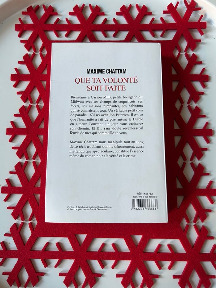 Je vends ce roman "Que ta volonté soit faite" de l'auteur Maxime Chattam.