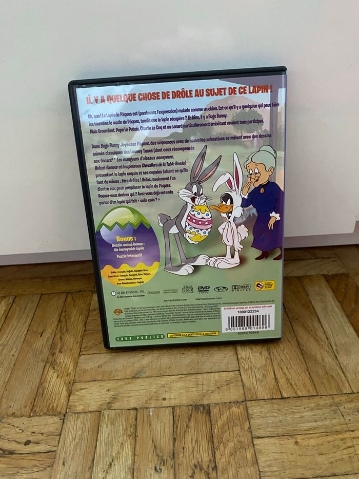 Je vends le DVD "Bugs Bunny : Joyeuses Pâques", un classique des dessins animés avec le célèbre lapin. - Type de produit : DVD - Titre : Bugs Bunny : Joyeuses Pâques - Type de contenu : Dessin animé Très bon état. N'hésitez pas à me contacter pour plus d'informations.
