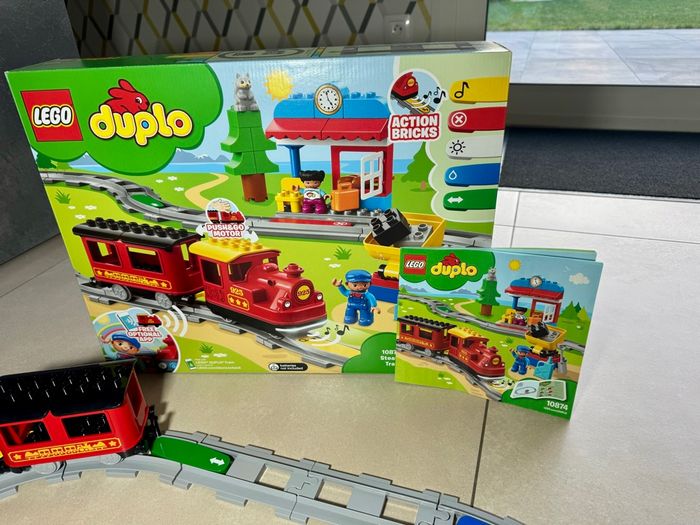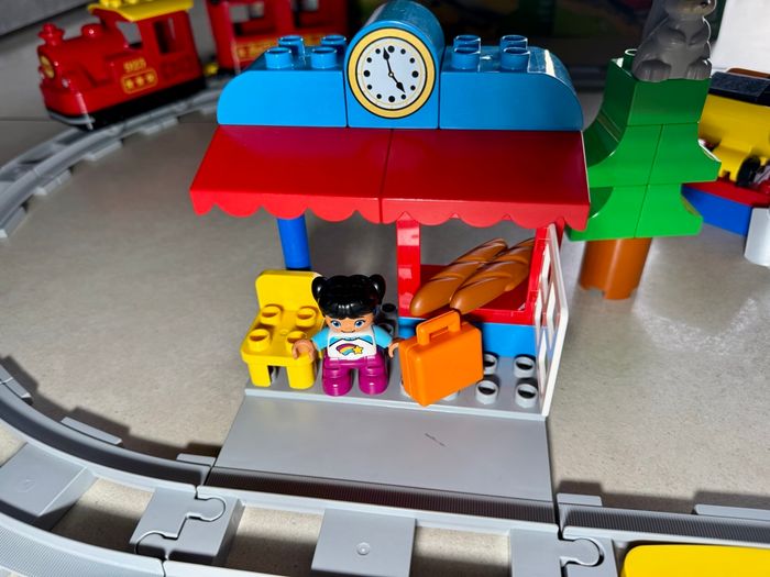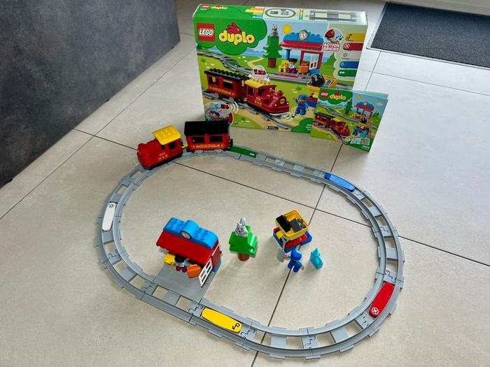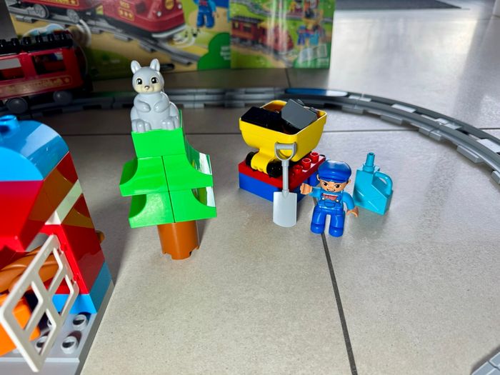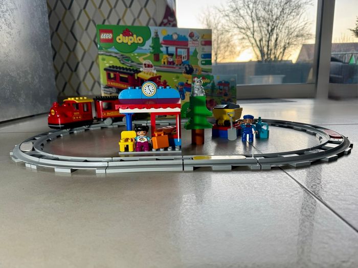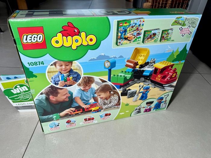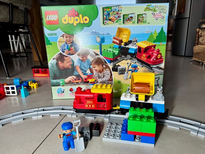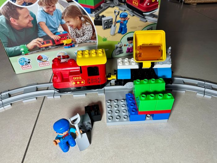 Avec une gare, un basculeur de charbon, 2 figurines DUPLO plus une figurine d'animal et un rail de train simple inclus dans cet ensemble LEGO DUPLO, les enfants d'âge préscolaire peuvent profiter d'un jeu de train enfant classique et amusant. Téléchargez l'application optionnelle pour débloquer encore plus de possibilités de jeu, y compris la fonction de télécommande et des activités amusantes à réaliser avec votre entant! Le train de l'équipe avec la voiture de passagers mesure plus de 10 cm de haut, 30 cm de long et 7 cm de large. La gare mesure plus de 15 cm de haut, 12 cm de large et 6 cm de profondeur.