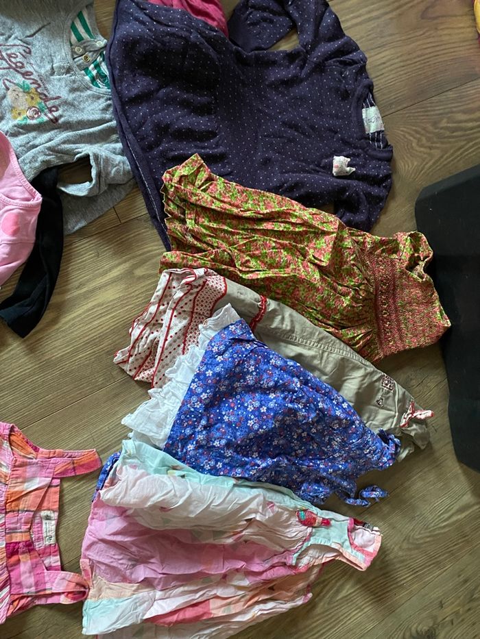 Lot de 21 vêtements fille en taille 2 ans, de marques diverses, portés plusieurs fois donc peuvent comporter des marques d’usures, généralement précisées dans l’annonce et en photos :