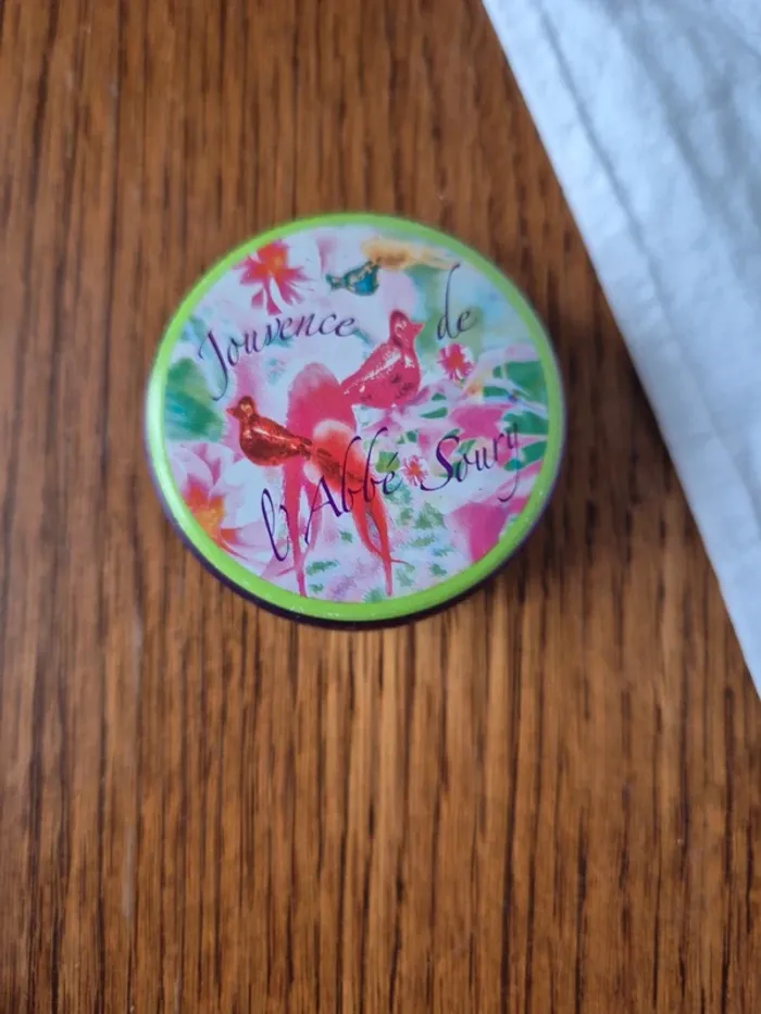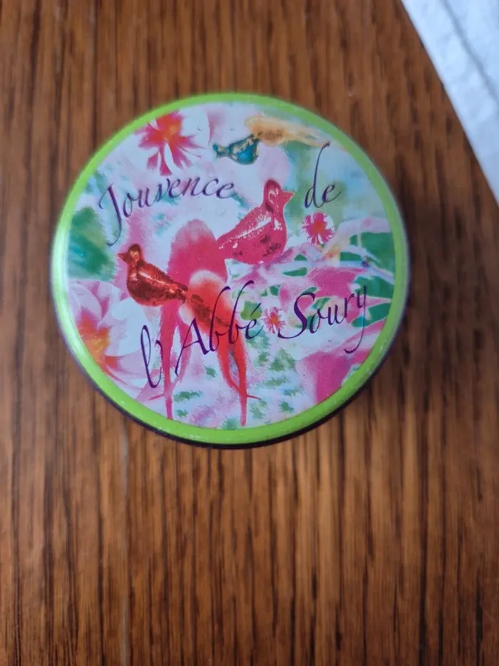 ⬇️mes autres annonces d'article de maison, décoration👉 #cg89déco une petite boite en métal d'environ 4 cm de diamètre, elle est décoré avec des motifs colorés magnifiques. Inscription L'abbe Soury bon état #boite #decor #labbesoury #metal #decoration N'hésitez pas à demander des informations ou des photos supplémentaires. Je peux avoir oublié de précisé certains détails.