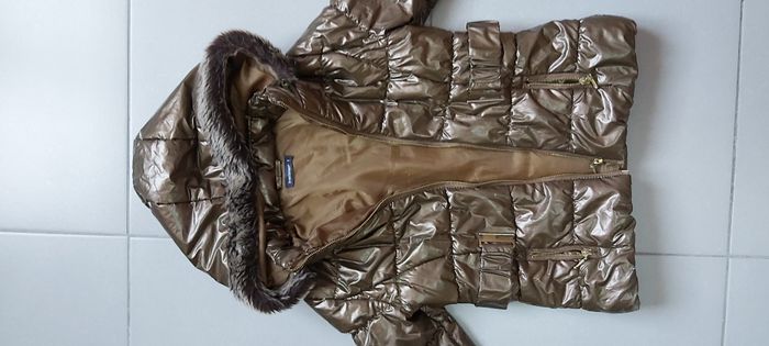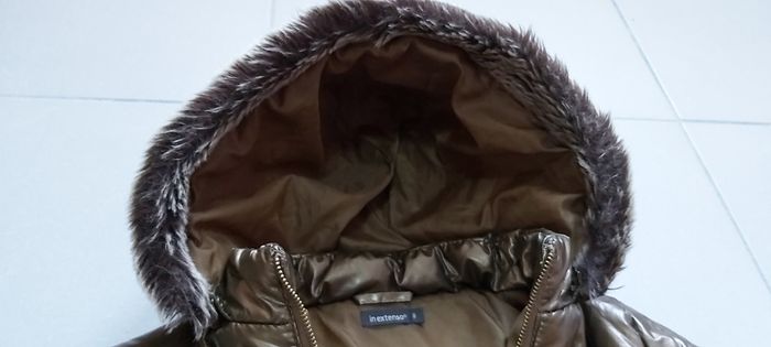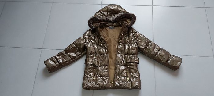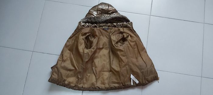 .Manteau à capuche Marron brillant Fourrure à la capuche La capuche peut être retirée : maintien par pression 2 poches zippées Abîmé niveau couleur sur le bout des manches et un peu ailleurs voir photo Taille 8 ans #carineddivetementfillehuitans