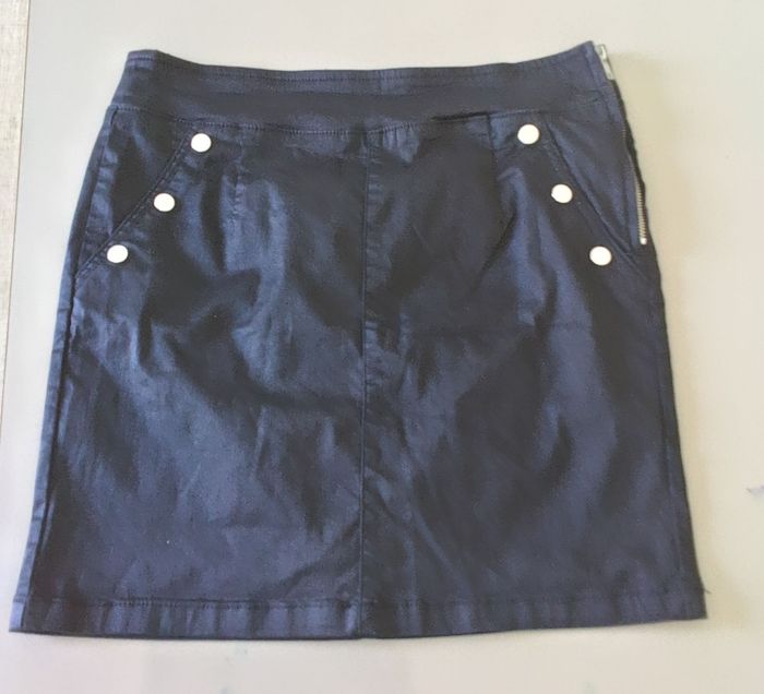 Jupe de la marque Cache Cache, de taille 42 et de couleur noire Jupe avec fermeture éclair sur le côté gauche, en très bon état, en coton polyester et élasthanne pour femme. Expédition rapide Tour de taille 78 cm Longueur totale 45 cm Prix 7€