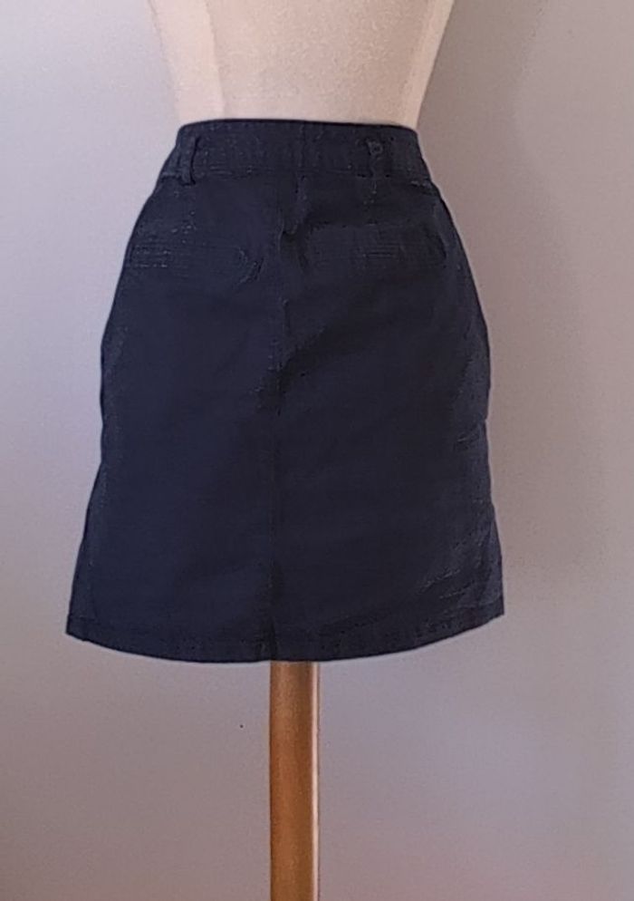 Jupe de la marque Cache Cache, de taille 36 et de couleur bleu marine. Jupe en bon état, en coton et élasthanne pour femme Tour de taille 70 cm Longueur totale 43 cm Prix 6€