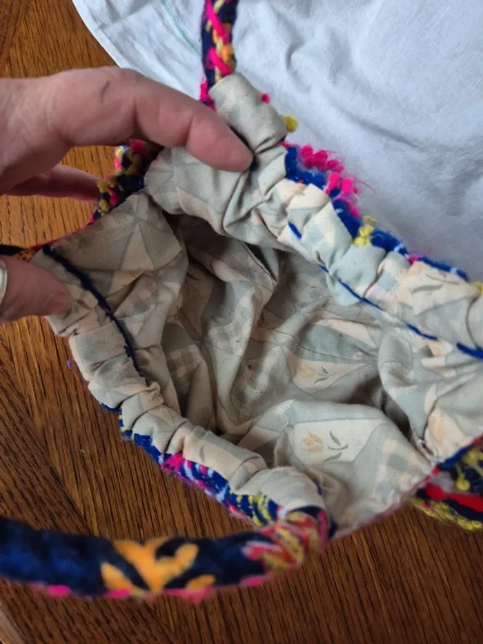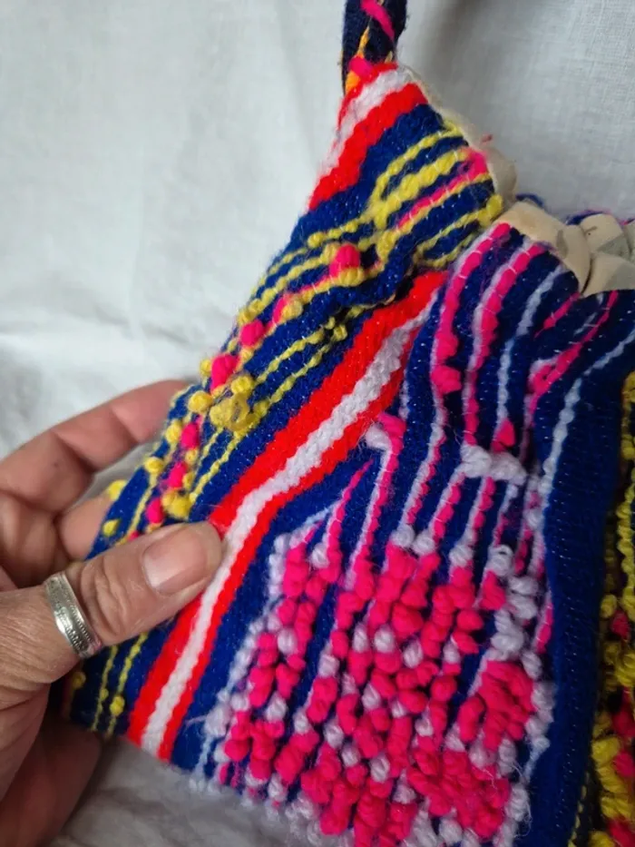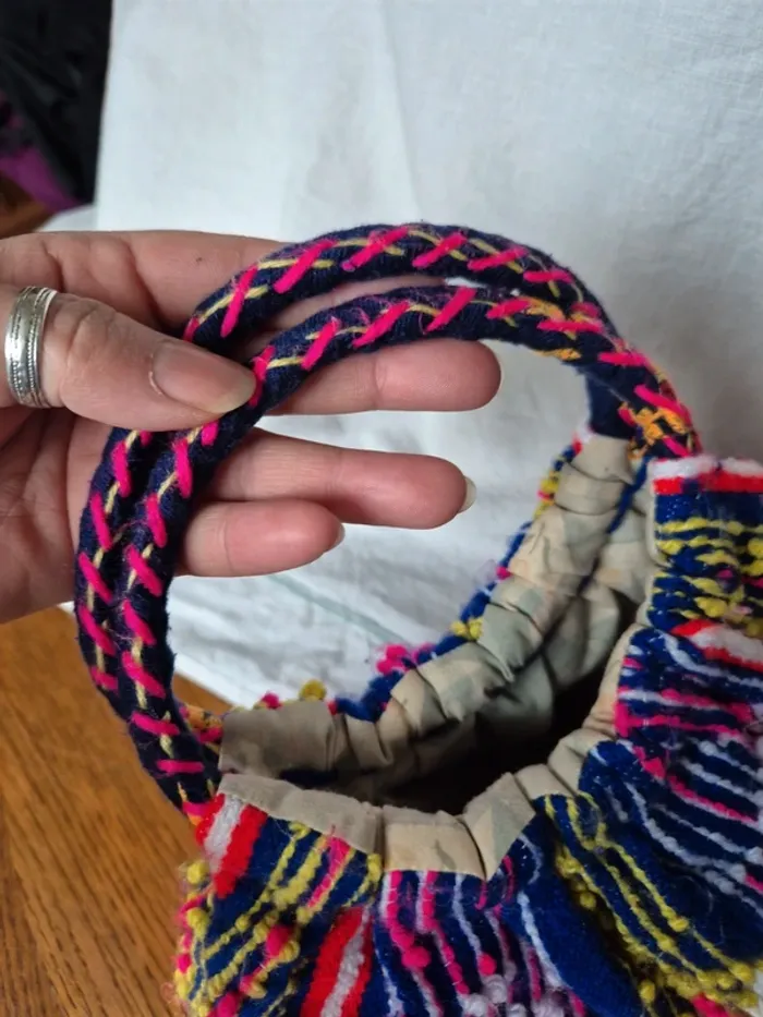 ⬇️mes autres annonces de sac 👉 #cg89sac Je vends ce sac à main traditionnel portugais aux couleurs vives et aux motifs colorés. Il a des anses tressées et l'intérieur à quelques taches (voir photo). Bon état N'hésitez pas à me contacter pour plus d'informations ou de photos. #sacamain #tradition #portugais #ethnique