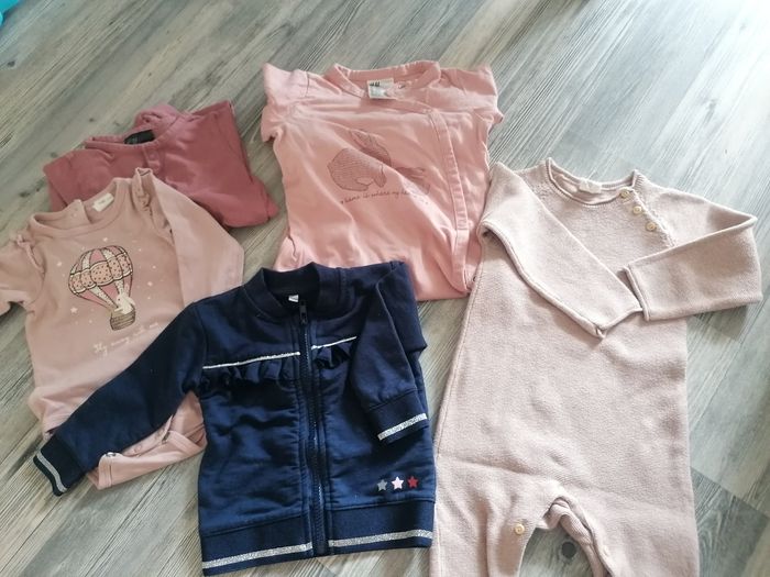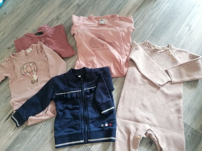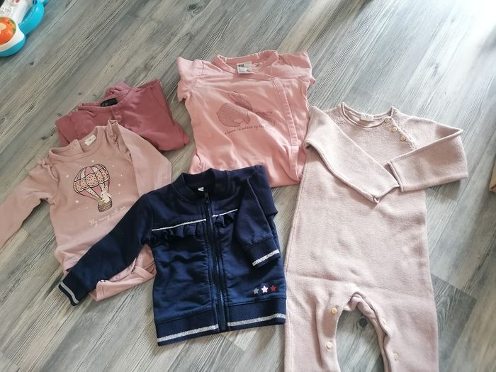 Lot de 9 mois qui taille grand et plutôt comme du 12 mois 2 pijama à pied Un body manches longues Une veste 1 combinaison longues (super jolie avec un body à col Claudine dessous)