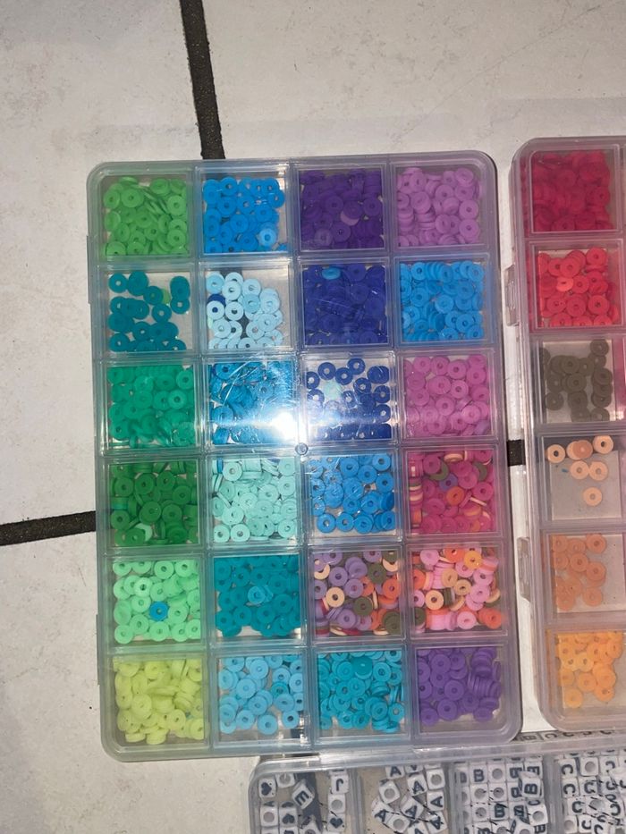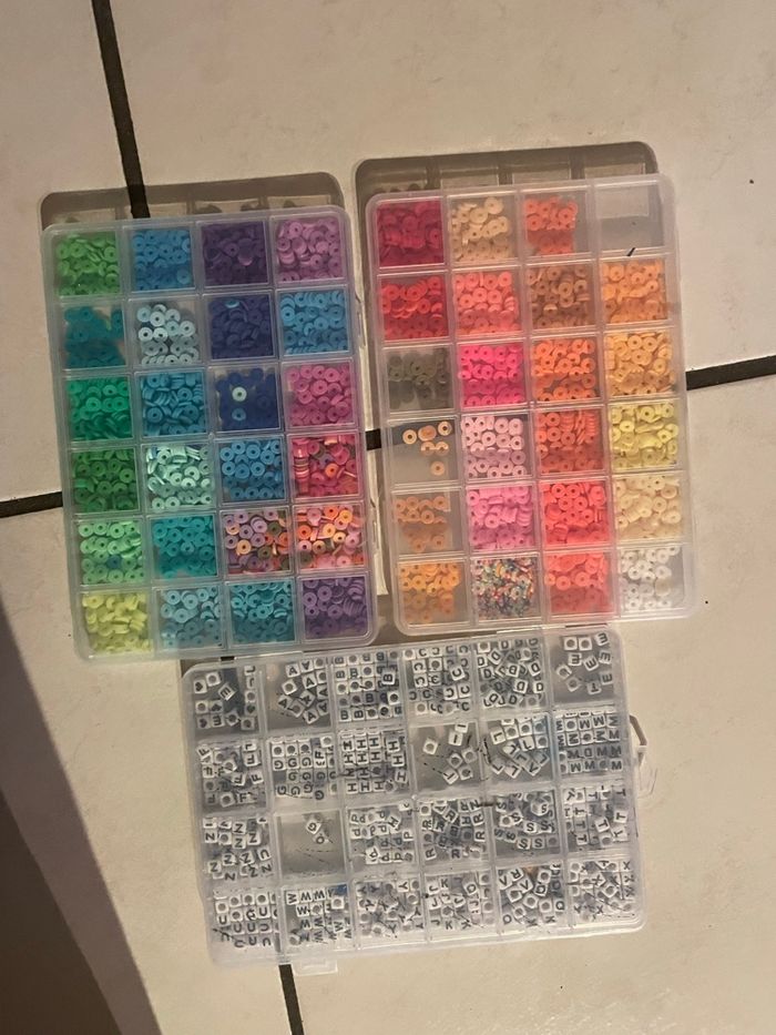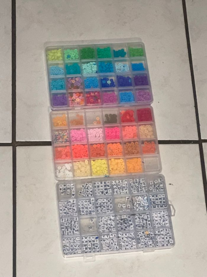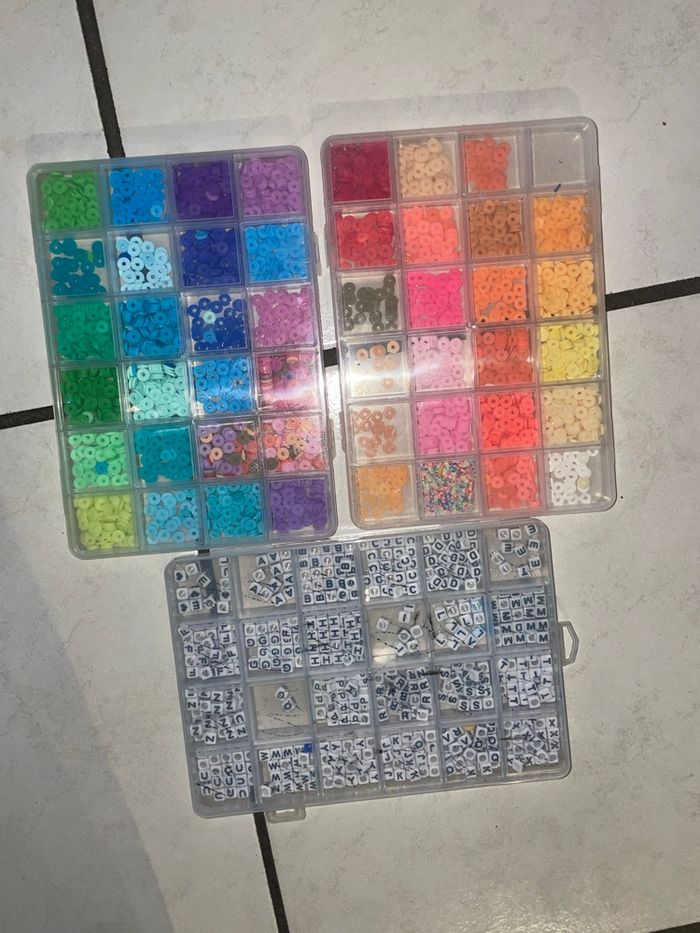 Lot de 3 boîtes de perles multicolores