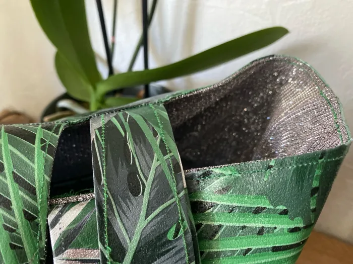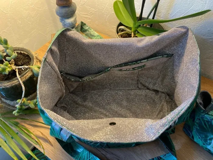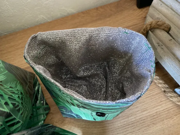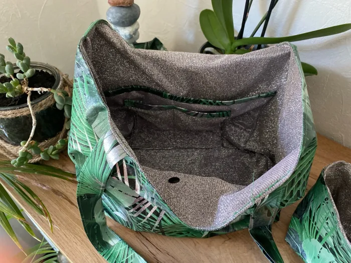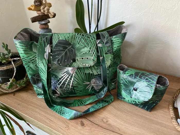 ✨ Joli sac fantaisie avec pochette assortie – modèle unique Tissu extérieur imperméable et intérieur pailleté argent pour une touche élégante. 📏 Dimensions du sac : Largeur : 32 cm Profondeur : 25 cm 📏 Dimensions de la pochette : Largeur : 18 cm Profondeur : 10 cm Un ensemble pratique, original et unique, parfait pour le quotidien ou pour offrir.